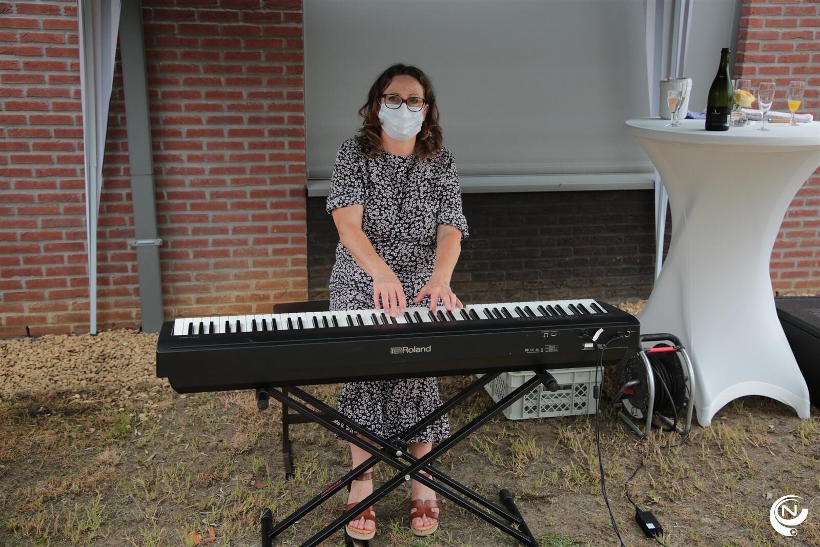 Op de foto's : o.a. Kris Breugelmans directeur van WZC Lindelo, burgemeester Marleen Peeters, en Nik Van Gool en Gaby Peeters van Ferm.