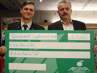 - 101 Compagnie bevoorrading & diensten: compagniecommandant ad interim kapitein Toon Van Wezer geeft cheque aan de heer Marc Thyssen, directeur van de VZW Ter Loke.