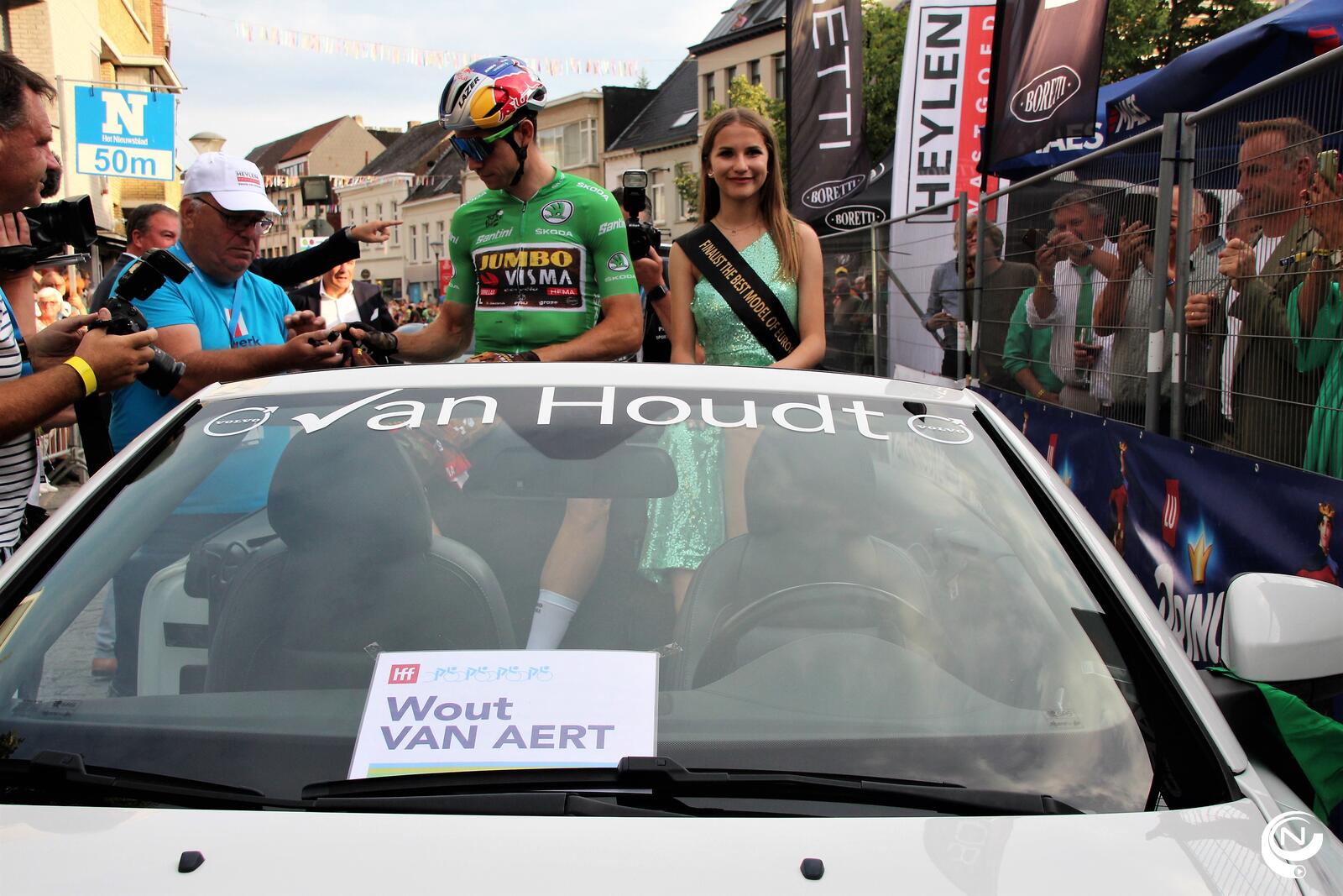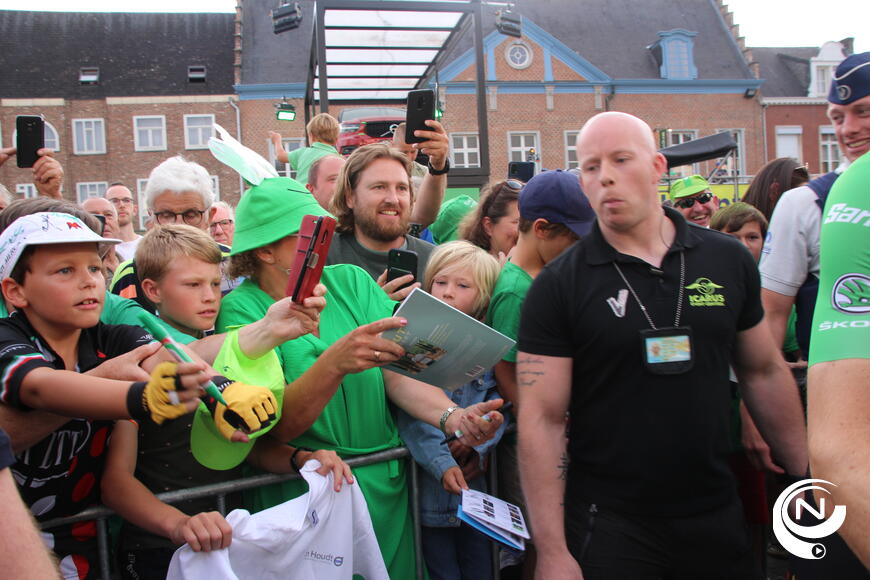 De renners namen voor de unieke parade samen met de missen plaats in de Volvo Cabrio's. Een fijn apart zicht voor de massa supporters. De straten waren groen bevlagd, heel wat bewoners waren groen uitgedost, de horeca deed gouden zaken. Meer moet dat niet zijn. Hertals op z'n best.