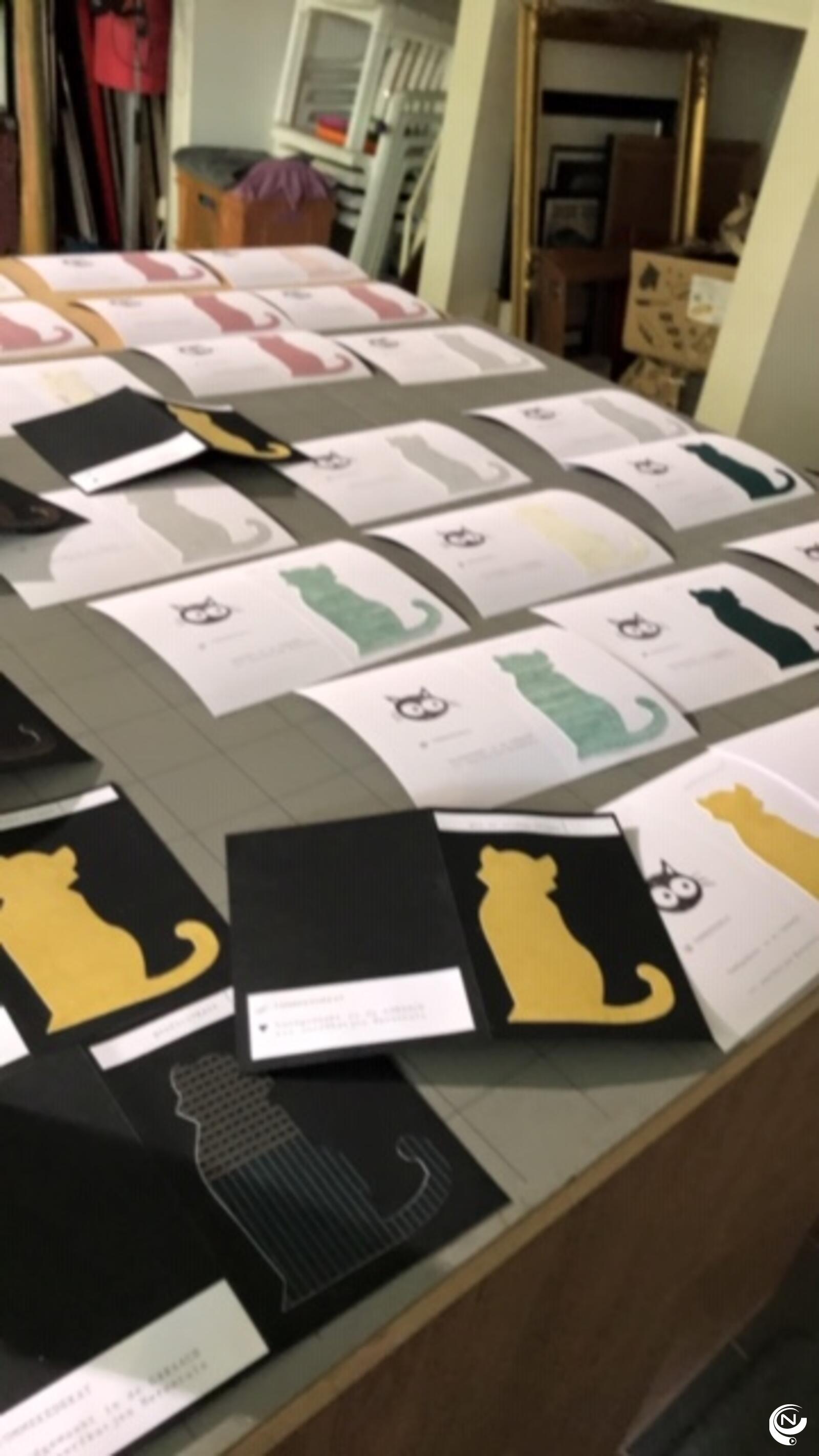 'Alle centen gaan integraal naar de katjes. Ik reken niets aan voor materiaal, papier, enz.  Ik bezorg per fiets, afhalen kan ook.
