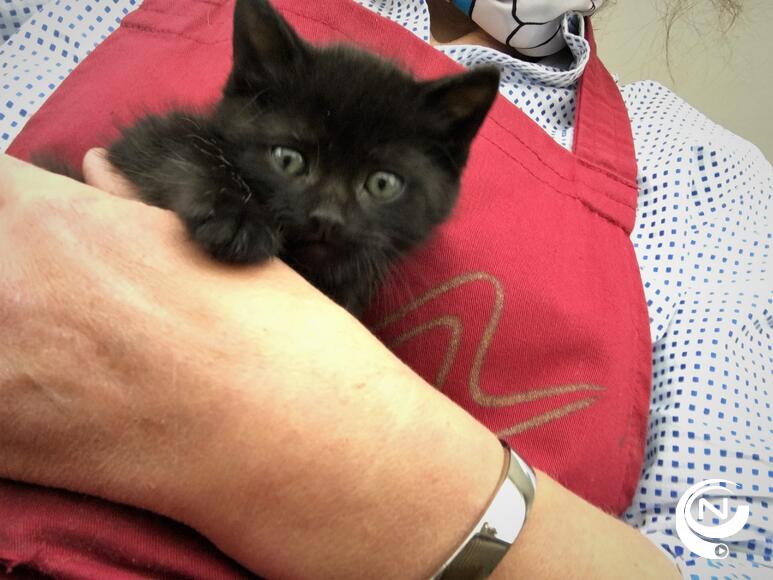 'Een klein zwart kitten, zat al miauwend in onze hangaar, 3 meter hoog  om aandacht te schreeuwen.