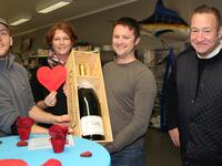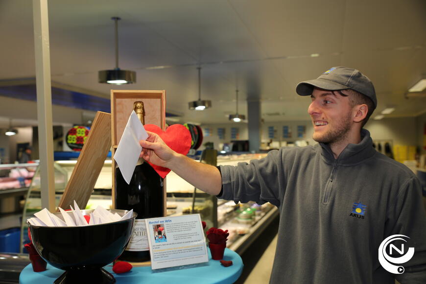 Vrijdagnamiddag kwam Jelle Vercammen (31) uit de Collegestraat Heist-op-den Berg als gelukkige winnaar de mathusalem champagne uit handen van Walter Arijs in ontvangst nemen. Jelle had voor Valentijn een sushi-schotel de luxe besteld.