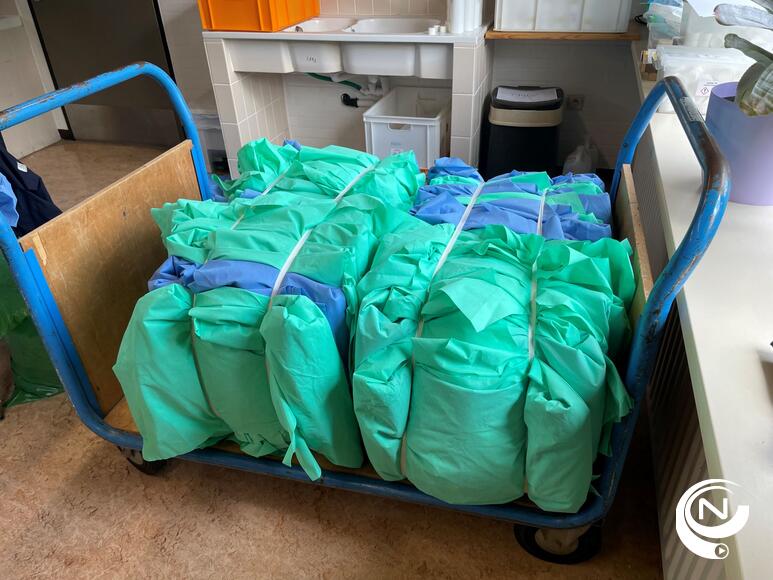 Om die berg en de ecologische voetafdruk te verkleinen zocht en vond AZ Herentals een partner in Het GielsBos. De inpakvellen die gebruikt worden om sets gesteriliseerde instrumenten te verpakken, worden daar verwerkt om te kunnen recycleren.