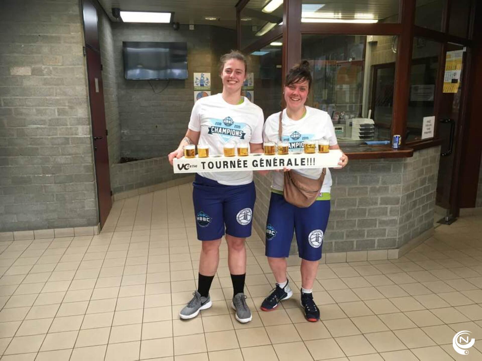 De derde titel van een HBBC-team dit weekend was een feit. De viering met de jeugdige supporters kon beginnen en werd afgesloten met een iets soberdere drank dan de champagne die de herenploegen werd aangeboden op zaterdagavond.