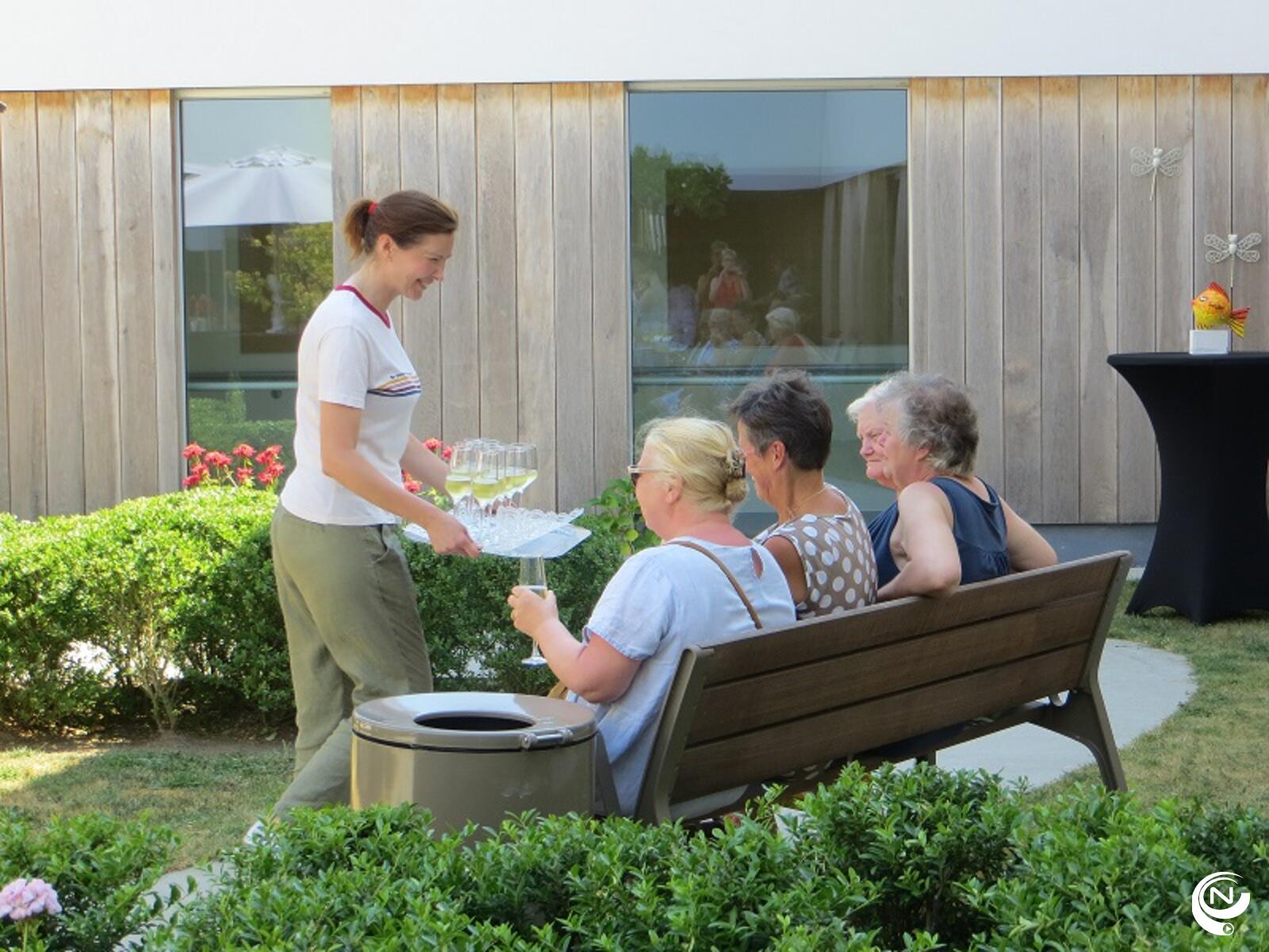 De bewoners met dementie die nog kunnen stappen, komen nu zelf meer spontaan naar buiten. De kinesist gaat met de bewoners stapoefeningen doen in de tuin en laat hen dan de bloemen en planten ruiken en proeven. Ook bezoekers komen nu gemakkelijker naar buiten, zij ervaren de tuin als een veilige en rustige omgeving. Ergotherapeut Marianne gebruikt de tuin ook als activiteit. Zij neemt een bewoner of een klein groepje bewoners mee op beleving door de tuin. (pp)