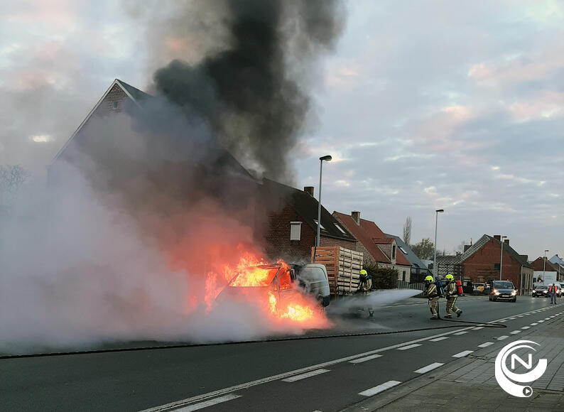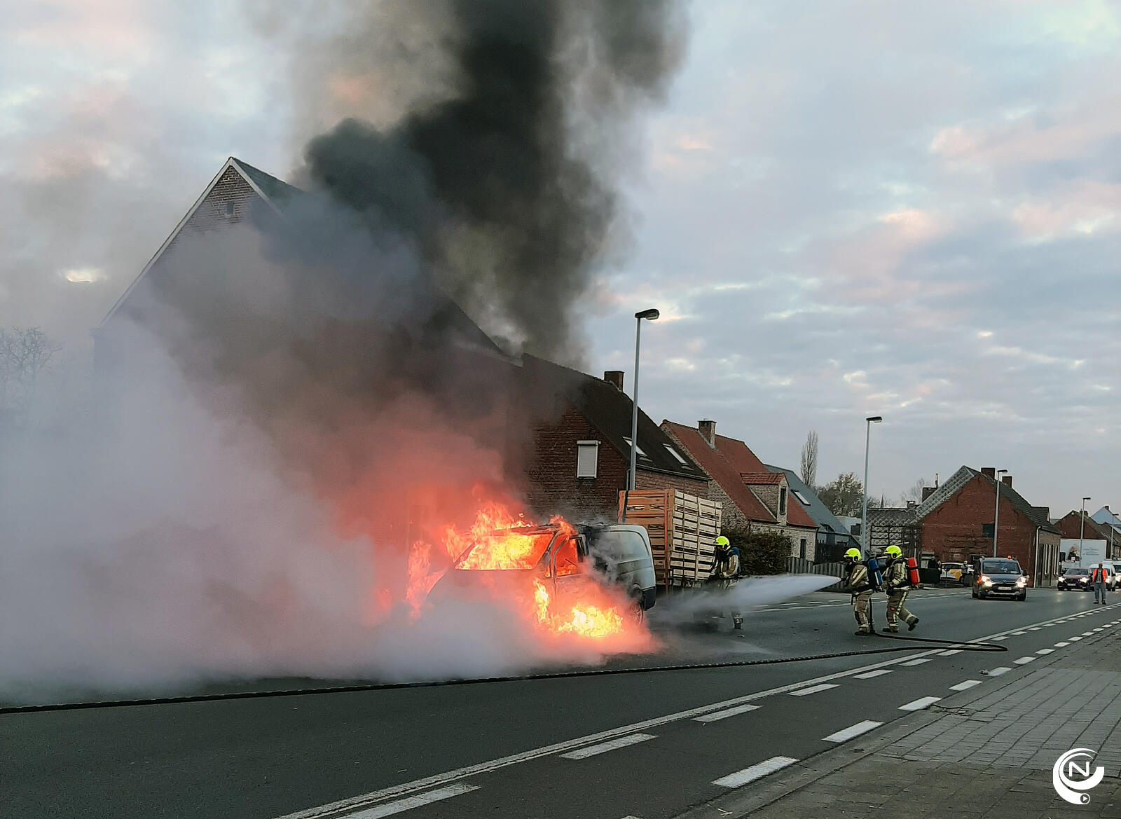 Brandweer Kempen was snel ter plaatse, maar het voertuig met aanhangwagen is volledig uitgebrand. De chauffeur kon zich redden, niemand raakte gewond.