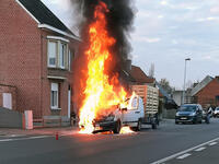 Op de Itegemsesteenweg in de buurt van Go-Fit en Delhaize is rond 16u een bestelwagen door een technisch defect in brand gevlogen. Volgens de bestuurder is de motor verhit geraakt en vatte vuur.
