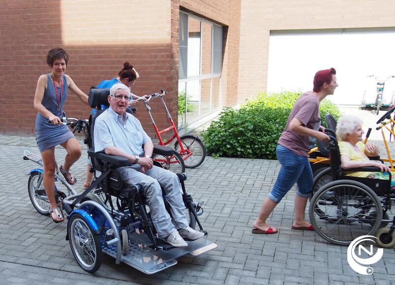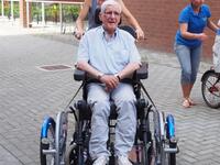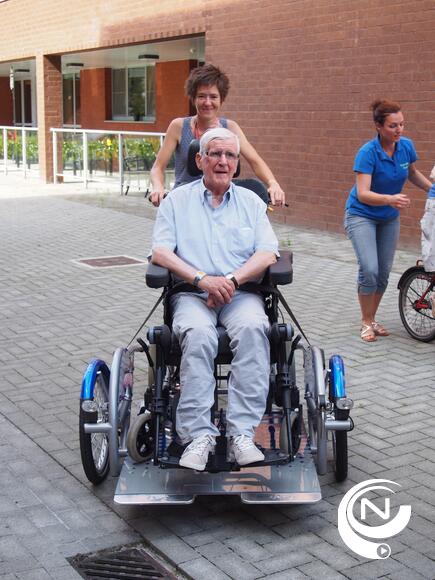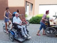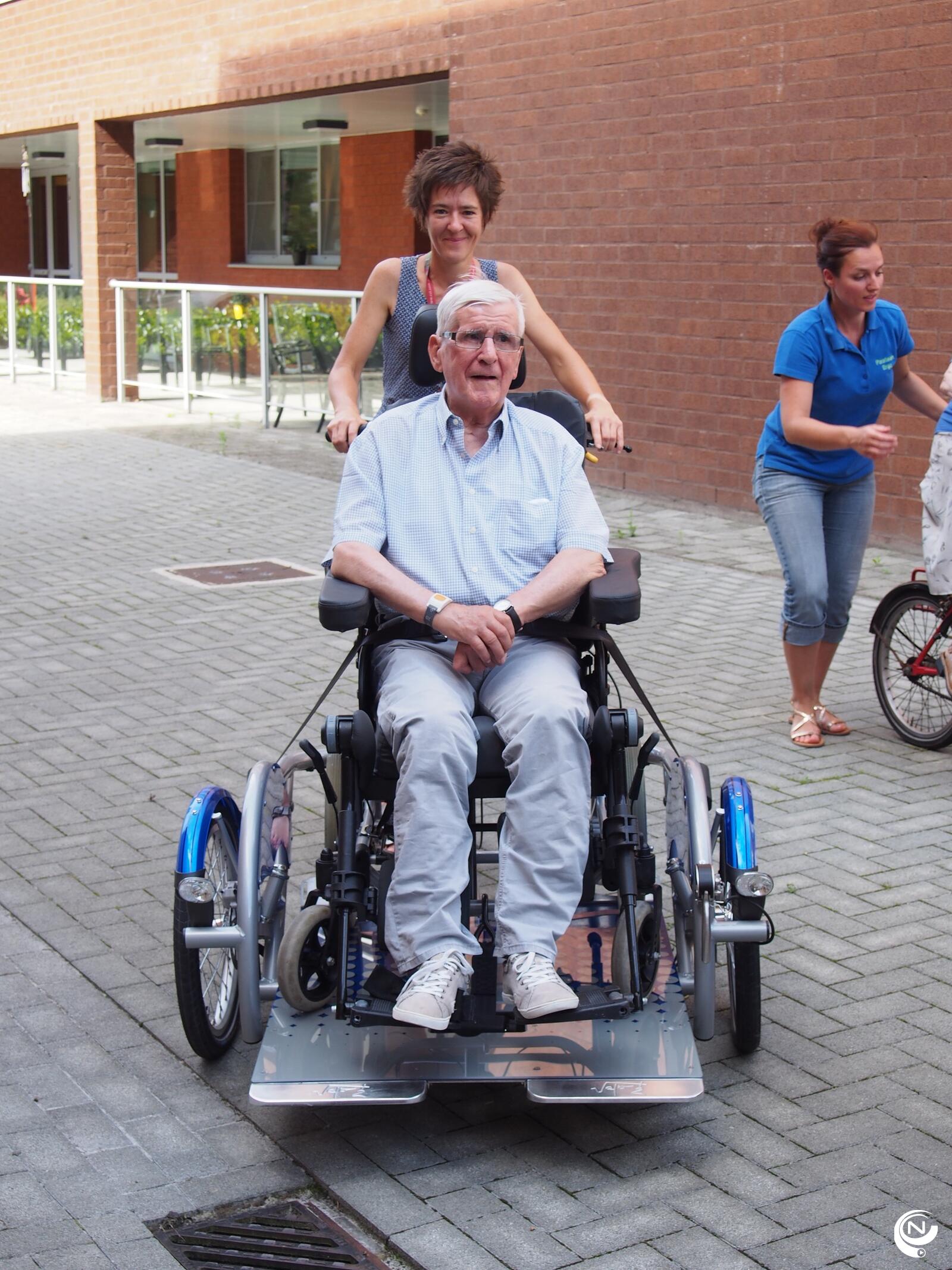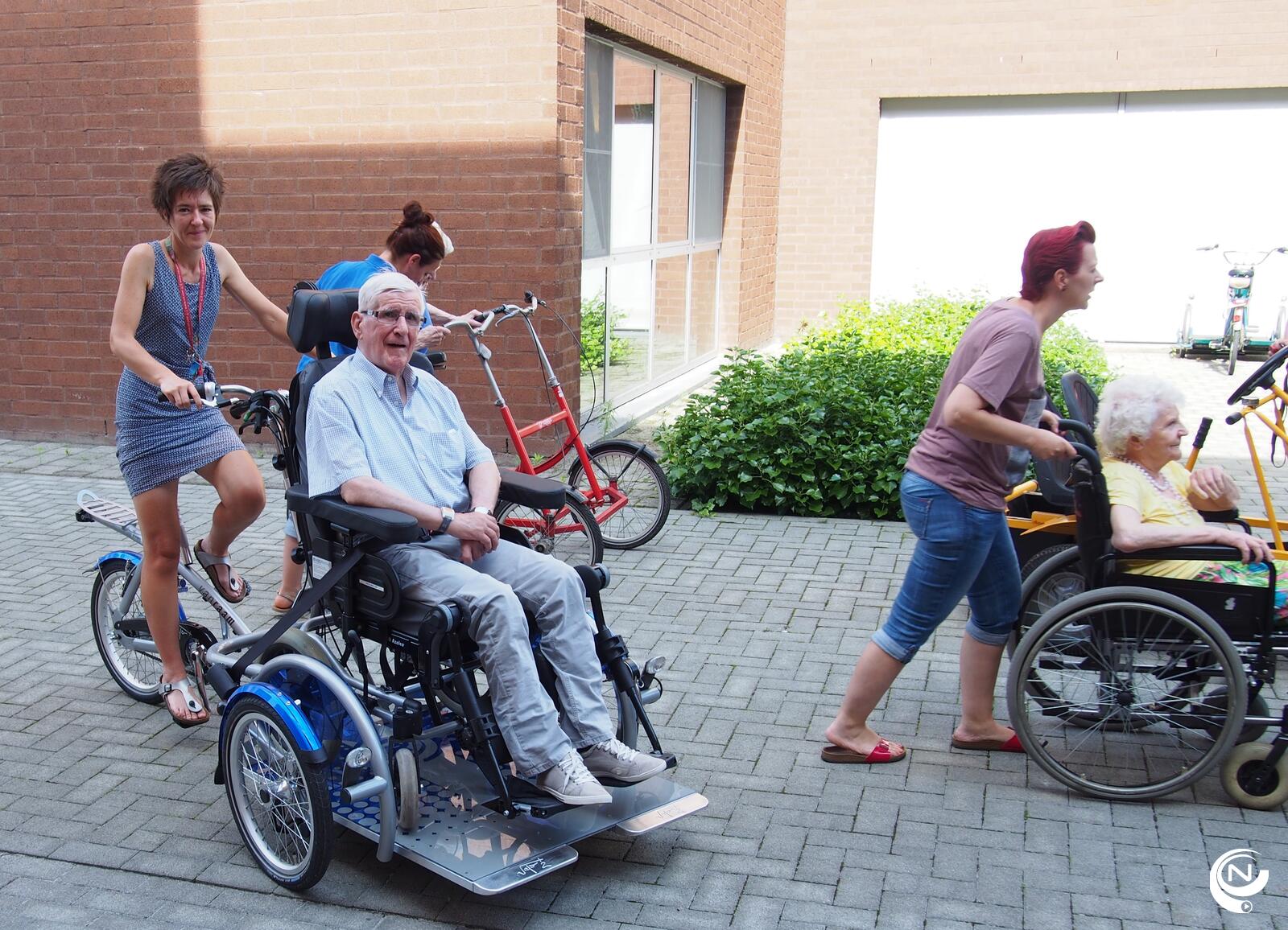 Alle rolstoelgebonden bewoners worden één voor één opgehaald om te genieten van de zomerse buitenlucht. Naast de nieuwe fiets, huurt het woonzorgcentrum extra exemplaren bij De Witte Mol.