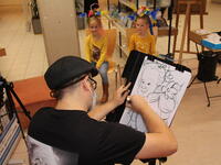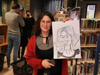 Karikaturist Marín is een hele toffe tekenaar die me nog altijd doet lachen. M'n tekening hang ik straks boven m'n bed. Zo mooi. Dank u bib-team.'