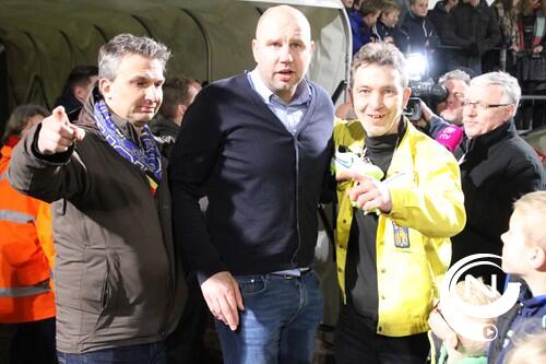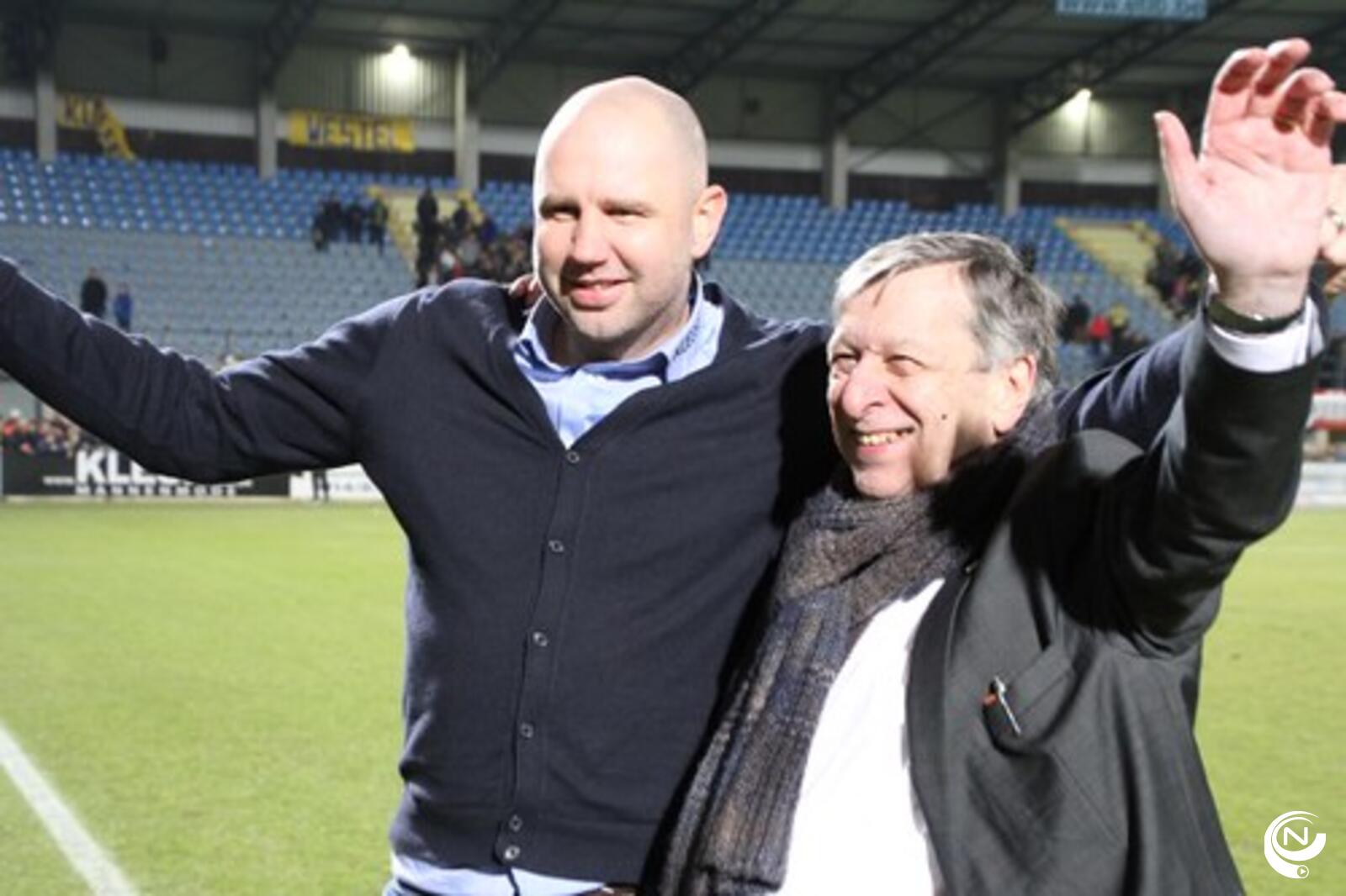 Trainer Bob Peeters en voorzitter Herman Wijnants genoten na afloop van de wedstrijd met volle teugen. Westerlo is gered maar helaas voor KVC Westerlo eindigen ze voorlaatste zodat de competitie er voor hen opzit.