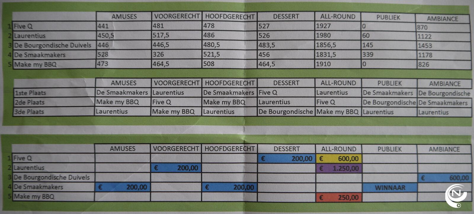 Five Q werd mooi 2e all-round, brons was voor Make my BBQ. De ambiance-prijs ging naar de Bourgondische Duivels.