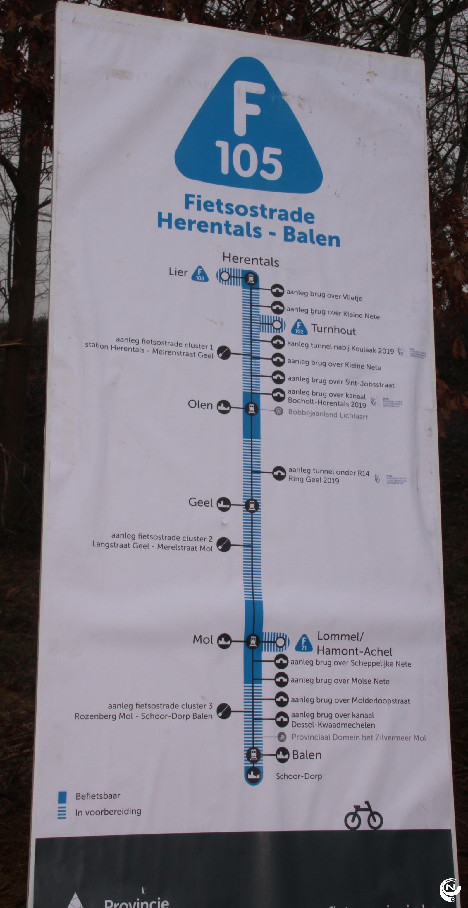 Fietsostrade F105 zit nog grotendeels in de planningfase, maar moet op termijn de kleinstedelijke gebieden Herentals, Geel en Mol met elkaar verbinden.