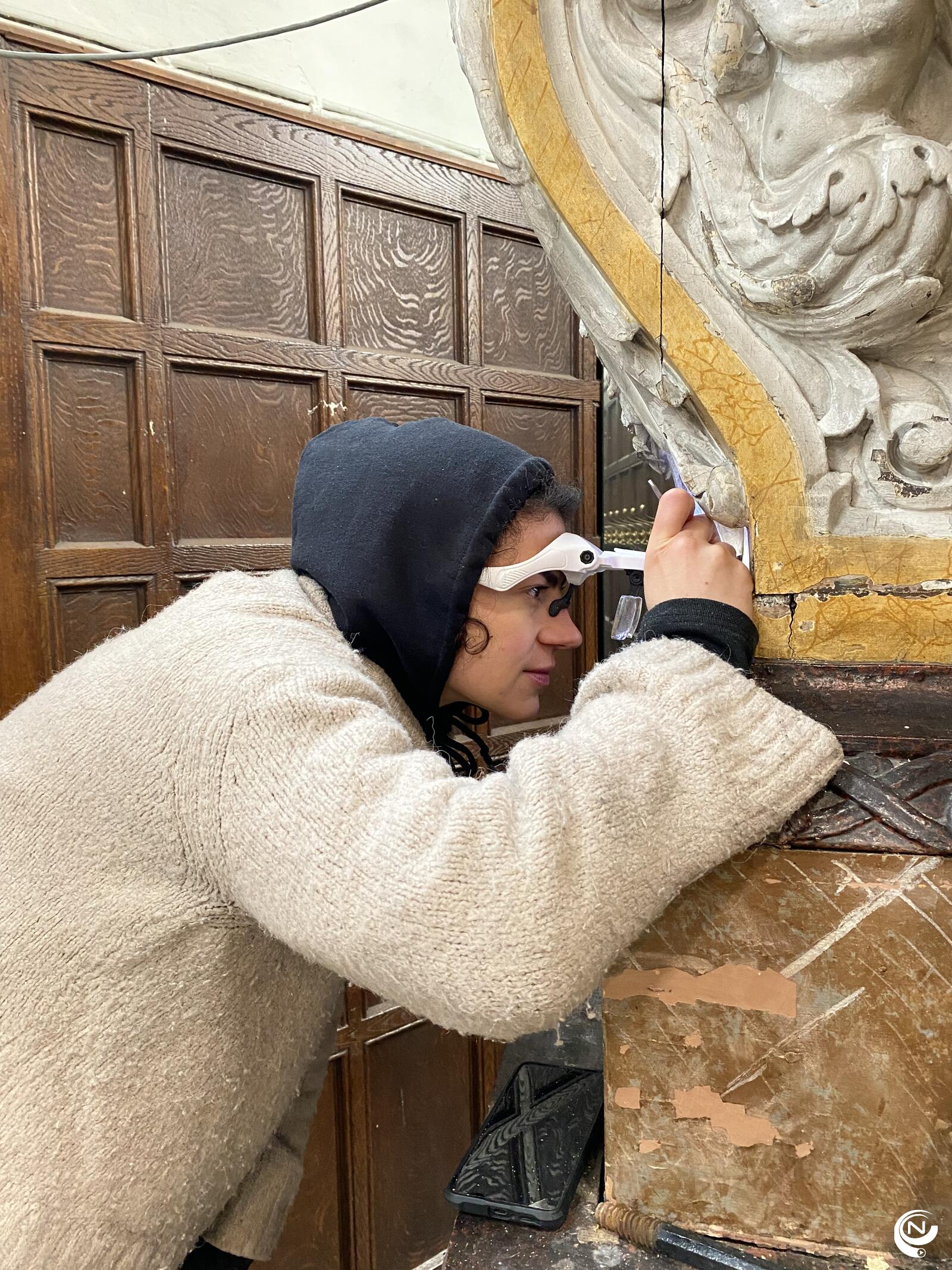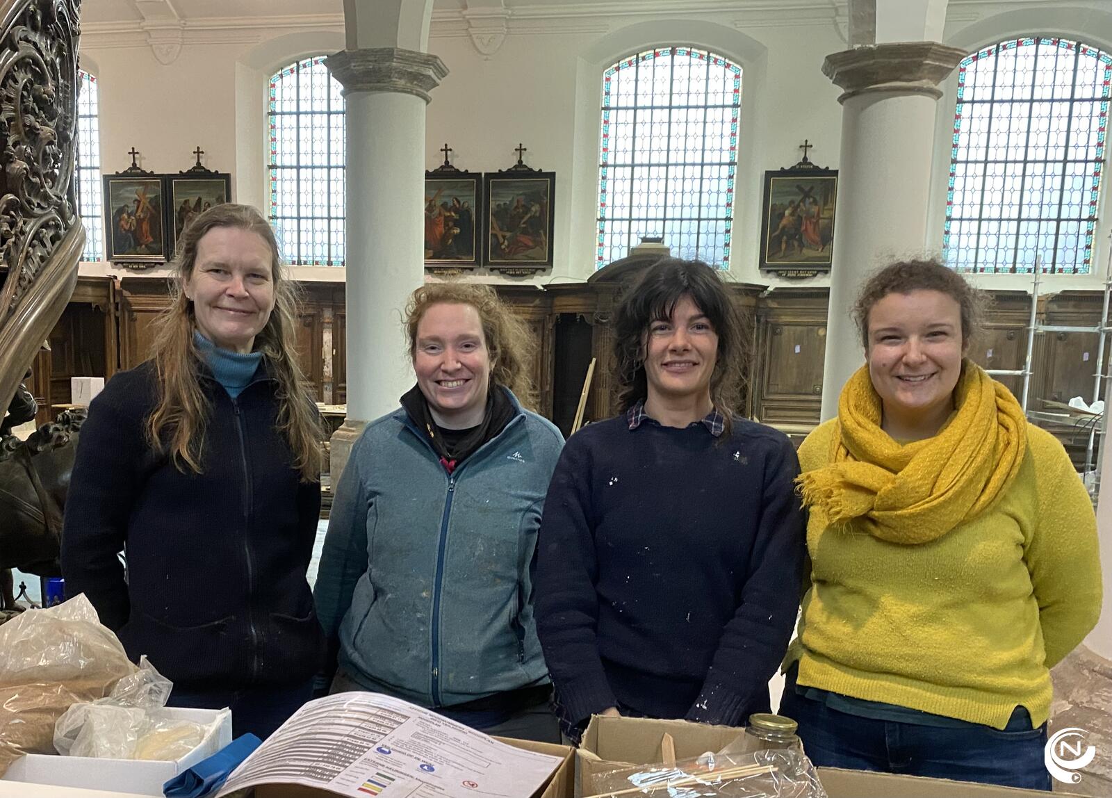 Ook de drie altaren van de kerk ondergaan een grondige opknapbeurt. Dat gebeurt door een team van vrouwelijke restaurateurs, dat al schitterend werk geleverd heeft. Het is ongelooflijk welk een metamorfose deze drie altaren ondergaan hebben. Met eindeloos geduld wordt alles grondig gereinigd, geretoucheerd en gefixeerd. De marmerschilderingen op de altaren zijn gewoonweg schitterend om zien.