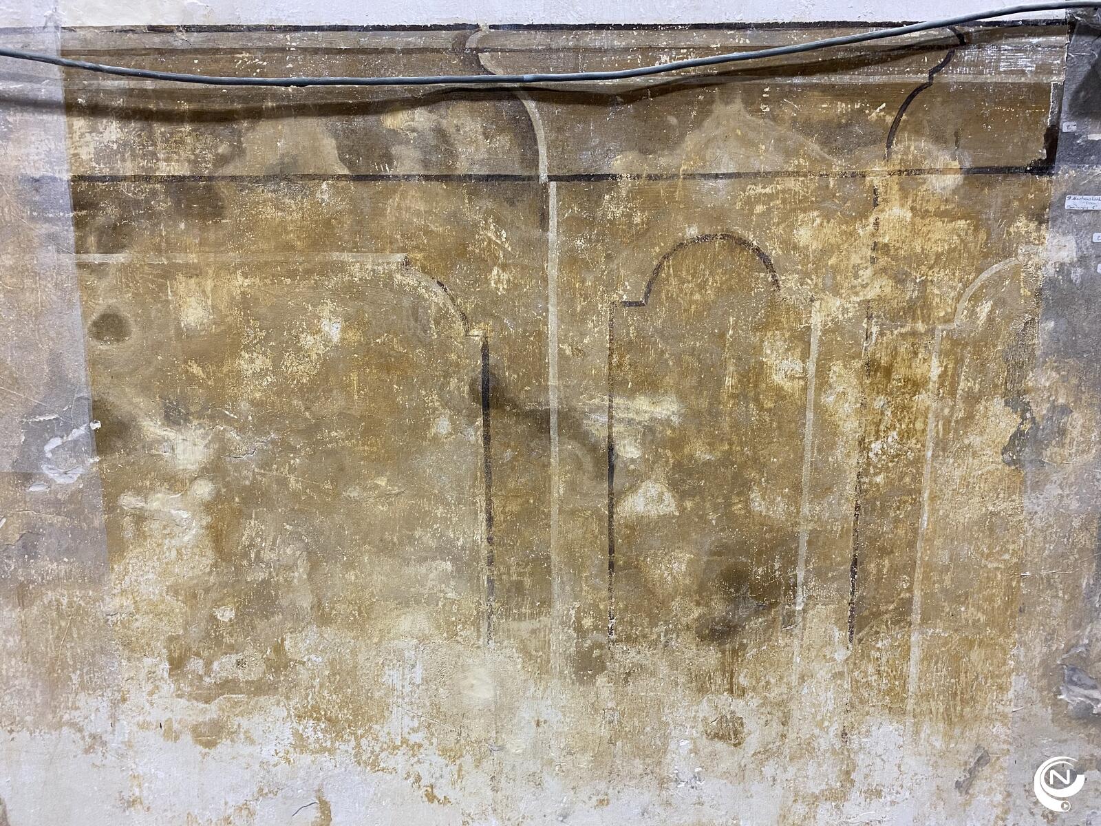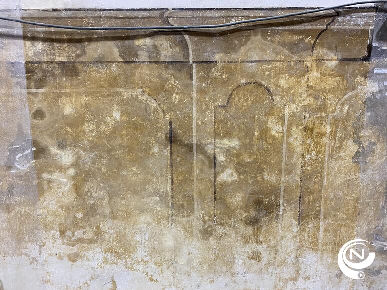 'Achter de houten lambrisering is een zeer oude muurschildering van een lambrisering tevoorschijn gekomen', zegt diaken Cis Marinus. 'Met oeverloos geduld heeft Irina Kudriavchenko (een restauratrice muurschilderingen, afkomstig uit Oekraïne) een vierkante meter van deze schildering ontdaan van latere overschilderingen. In het paneel van de lambrisering werd op die plek een ‘deurtje’ gemaakt, zodat de eeuwenoude muurschildering zichtbaar kan blijven.