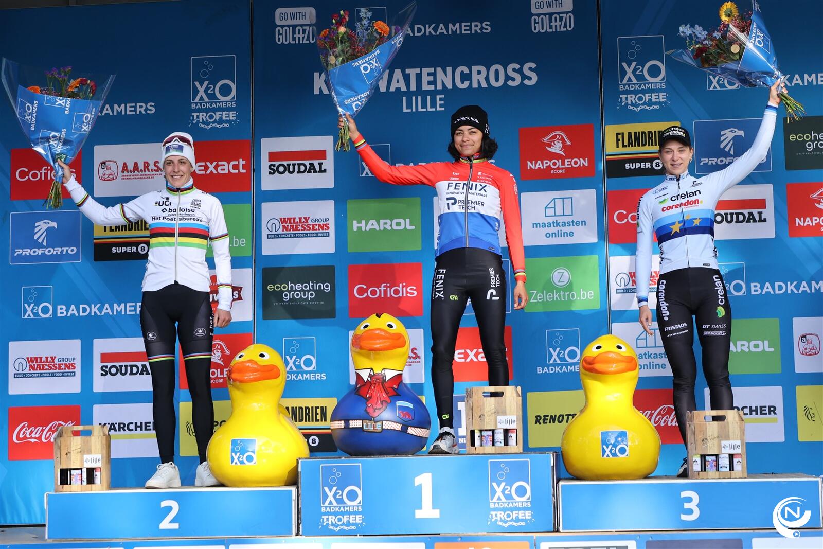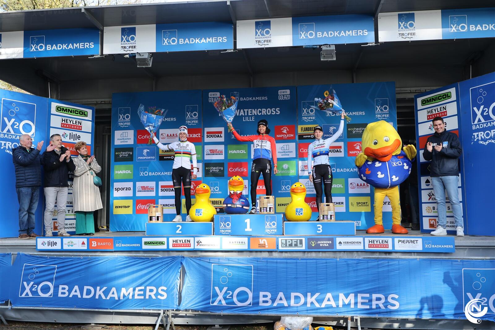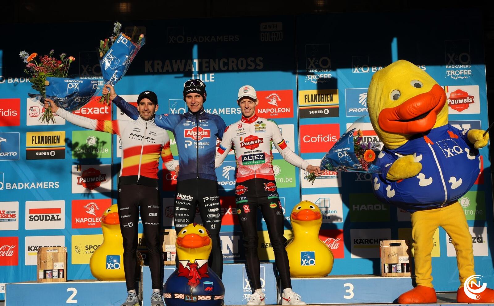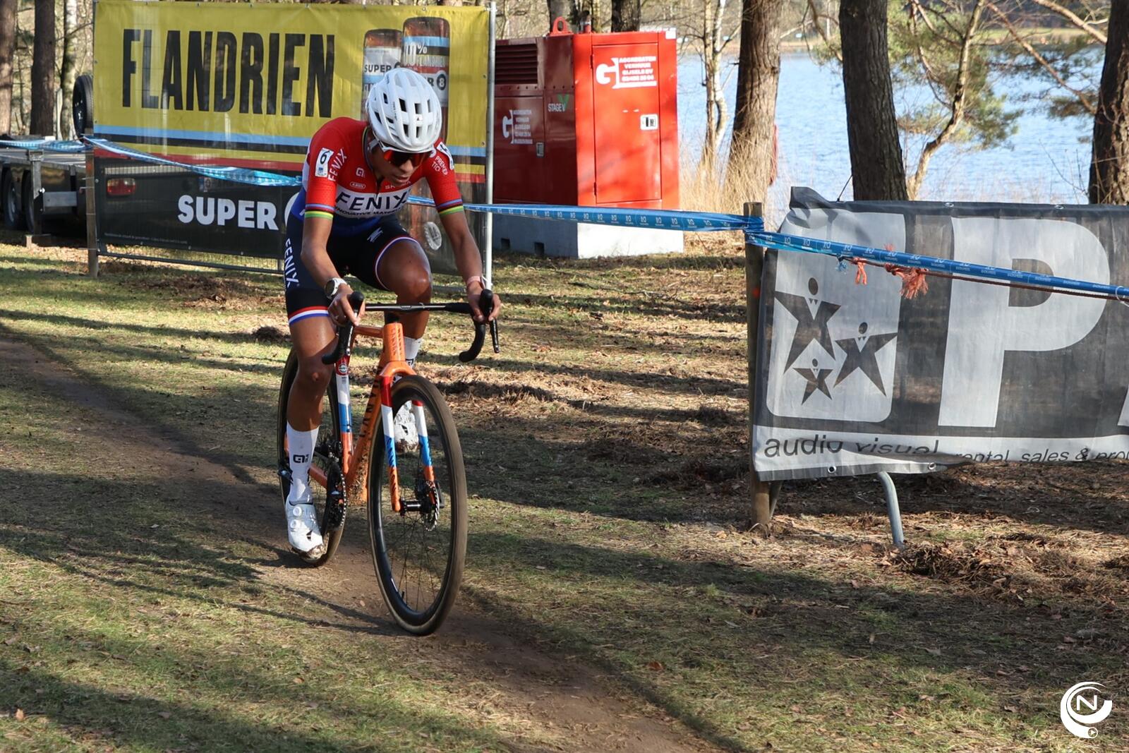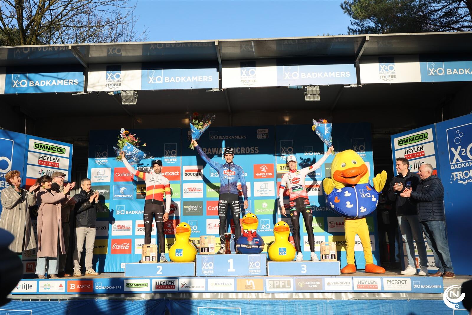 Bij de mannen geen wereldkampioen Mathieu van der Poel, maar zijn afwezigheid schrapte de eigenschap ‘eentonigheid’ uit de wedstrijd. Niels Vandeputte won verdiend, maar niet zonder slag of stoot.