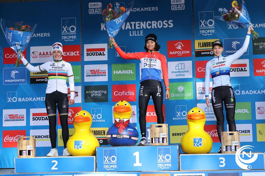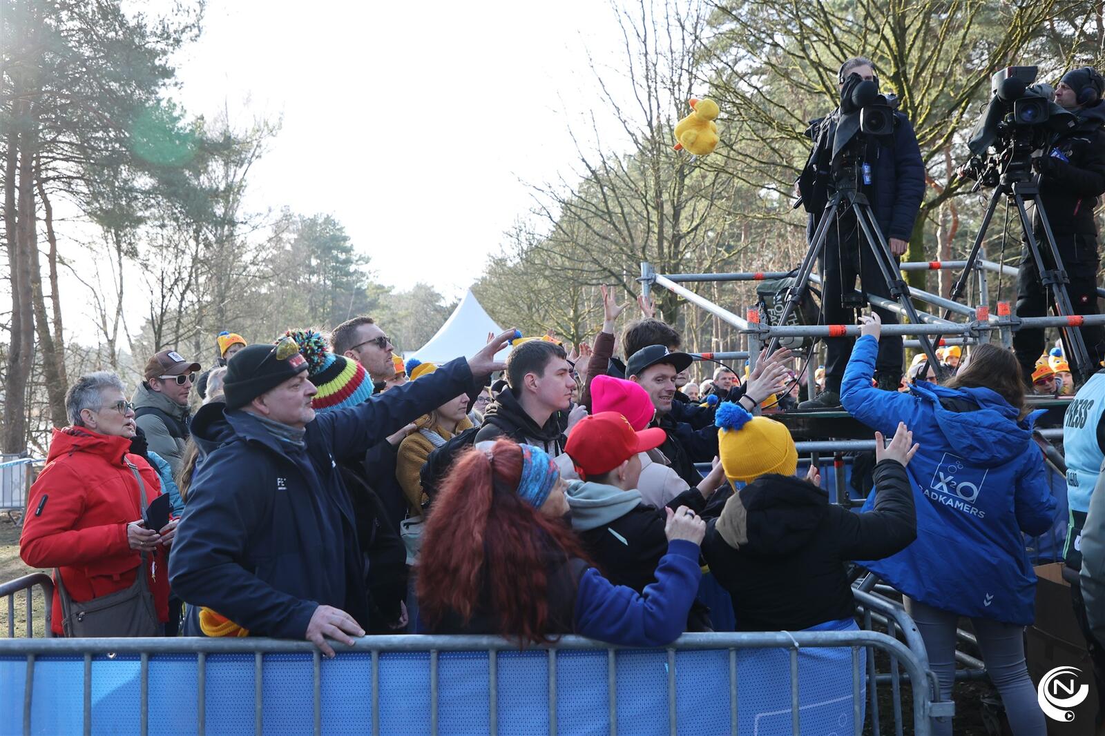 Hoe een veldrit in Lille de liefde tussen Rien en Isabel in Gent kan bezegelen. Rien gaat overigens Isabel in mei niet louter een ring geven, maar ook een badeentje dat sponsor X2O-badkamers naast de traditionele mutsen uitdeelde op de Lilse Bergen. Een badeendje dat het koppeltje eind mei bij ondergaande zon zal laten varen vanop de kade van de Gentse Leie. Wedden dat wanneer Rien over pakweg tien jaar wordt gevraagd wie de veldrit in Lille won, hij met de glimlach roept: ‘dat badeentje’!