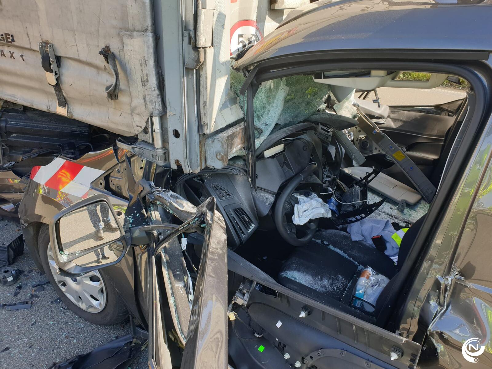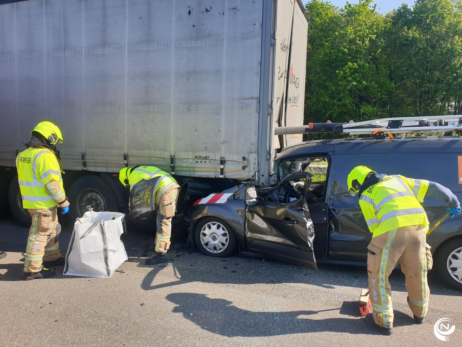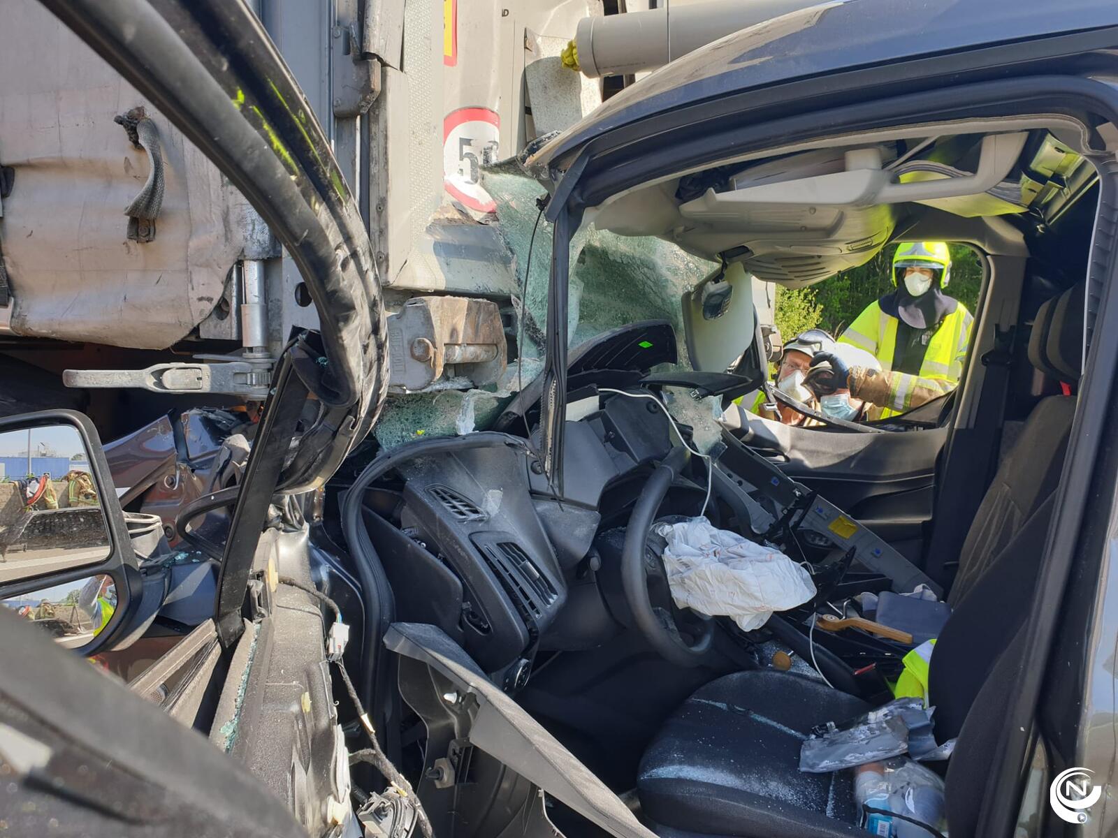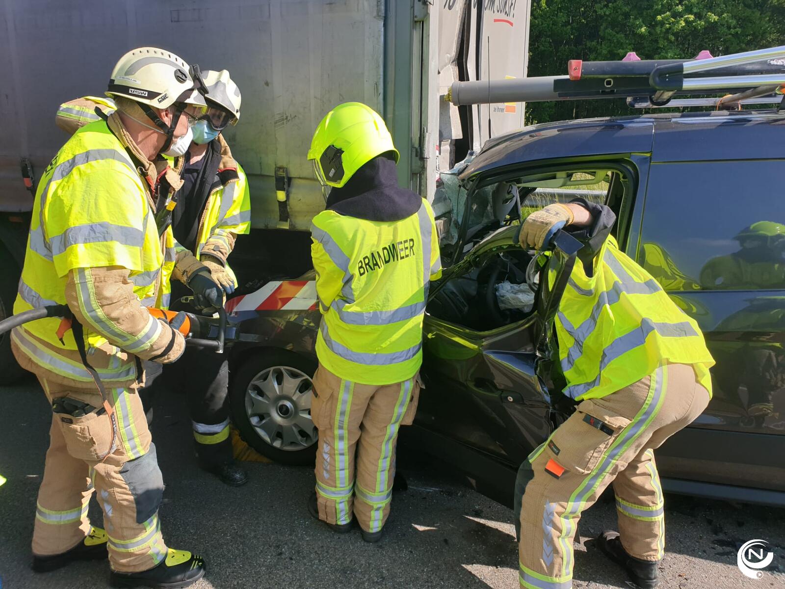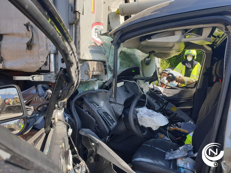 Brandweer Kempen moest de bestelwagen openknippen om de bestuurder te bevrijden. De man, een 30-er uit Limburg, is zwaargewond naar het Ziekenhuis Geel gebracht.
