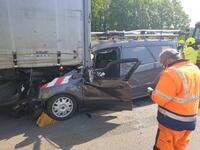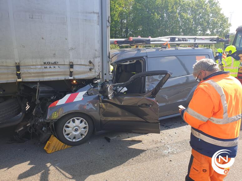 De E313 blijft een crash-snelweg. Aan de werken in Geel-West Oevel is vanmorgen rond 09.30u nog maar eens een zwaar ongeval gebeurd. Een bestelwagen van telecom Orange reed achteraan in op een vrachtwagen in de staart van de file.
