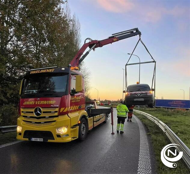 Eerst op de avond slipte nog op de afrit Herentals-Industrie, richting van Antwerpen, een bestelwagen en kwam bovenop de vangrails terecht. De wagen moest getakeld worden. De uitrit was korte tijd afgesloten voor het verkeer. De bestuurder kwam er wel met de schrik vanaf.