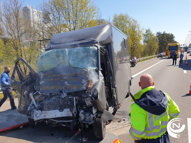 De bestuurder van de Nederlandse paardenbestelwagen reed achterin op een stilstaande vrachtwagen. Brandweer Kempen moest de bestuurder bevrijden.  De Nederlander is zwaargewond naar het Ziekenhuis Geel gebracht