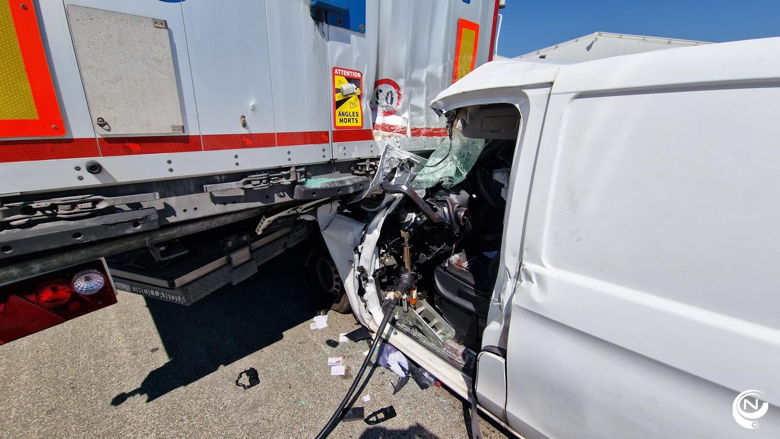 Die file was het gevolg van een eerder zwaar ongeval met 3 vrachtwagens in Ranst. De bestuurder van de bestelwagen is zwaargewond naar het UZA Antwerpen gebracht. De brandweer had bijna een uur nodig om het slachtoffer te bevrijden.