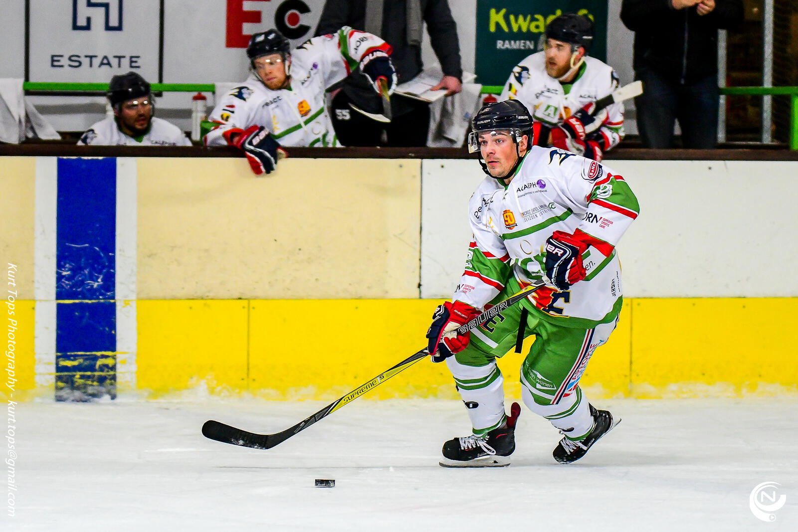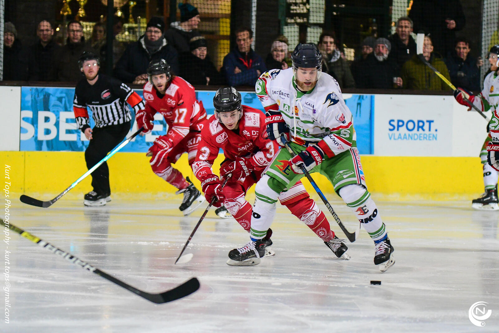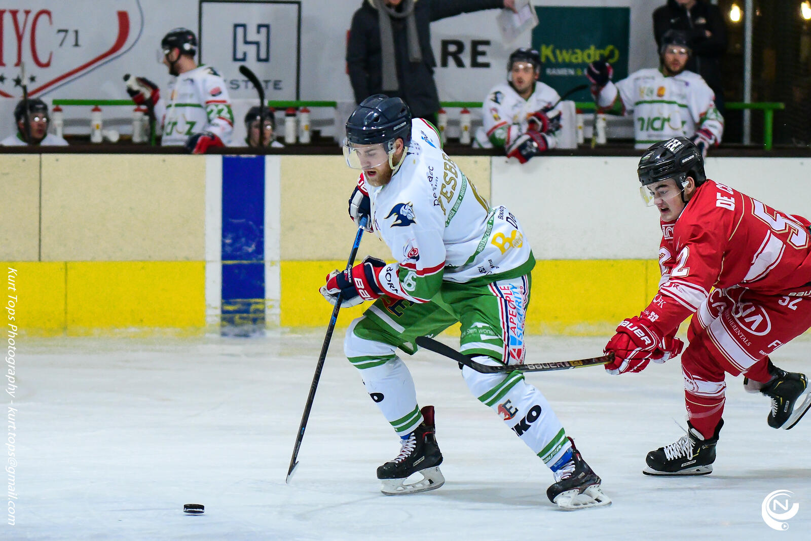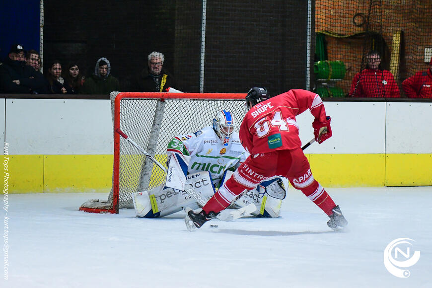 Na ruim 3 minuten stond het al 2-0. Daarna kwam Eaters beter in het spel en kwamen ze nog voor het verstrijken van de eerste periode op voorsprong, door doelpunten van Levi Smeets, Matthew Beer en Lukasz Bartak.