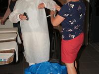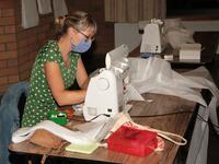 De acute nood aan schorten is iets minder groot dan in april, maar we kunnen maar beter voorbereid zijn', zegt Kris Breugelmans. 'De schorten zijn gekoppeld aan een kamer in het rustoord en ze worden dagelijks vervangen en kunnen in de was. In april hadden we 3 verschillende maten, nu wordt er een tussenmaat gemaakt.'
