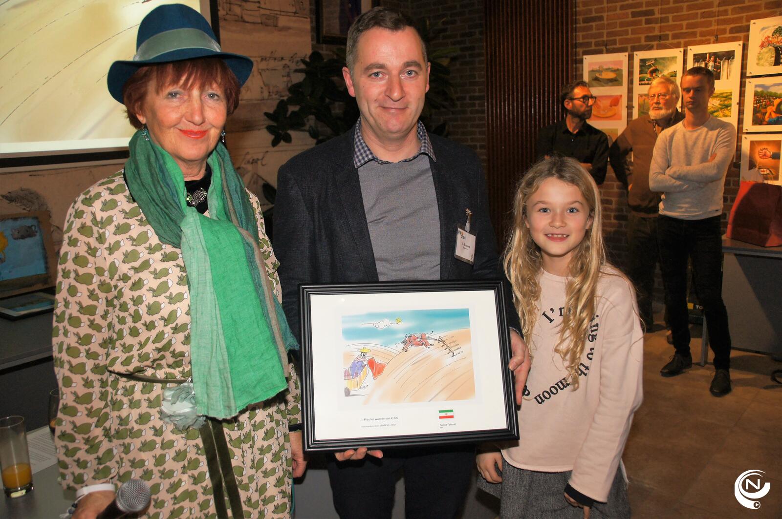 Maelys Hendrickx uit Aalst (foto) kwam haar prijs wel persoonlijk in ontvangst nemen tijdens de prijsuitreiking. Haar tekentalent heeft ze wellicht geërfd van haar vader die al jaren trouw deelneemt aan de Olense Kartoenale.