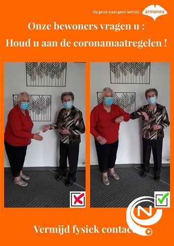 Mondmasker dragen, niet samenscholen, afstand houden, begroeten met een elleboogje,... Elke coronaregel werd door de creatieve oudjes ludiek in beeld gebracht.