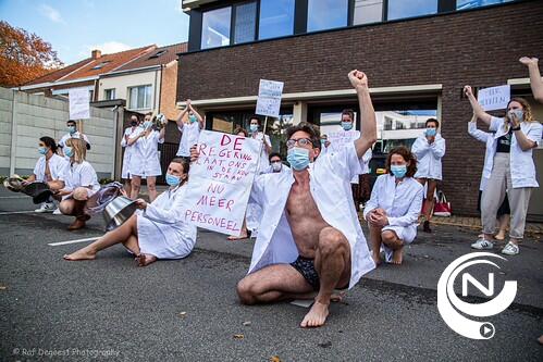 De teams van Geneeskunde voor het Volk van Hoboken, Zelzate en Marcinelle hielden deze maandagmiddag een flitsactie, om op te roepen tot onmiddellijke maatregelen voor het verplegend personeel. Vlaams Parlementslid Lise Vandecasteele (PVDA) was erbij in Hoboken.