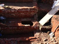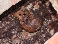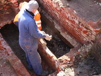 'We denken dat de lijkkisten in de constructie geschoven werden en werd de rustplaats dan dichtgemetseld. We zijn die nu één voor één aan het openen en stuitten daarbij al op 3 skeletten.' Donderdag was er even sprake van 5 skeletten, maar dat aantal is ondertussen bijgesteld.