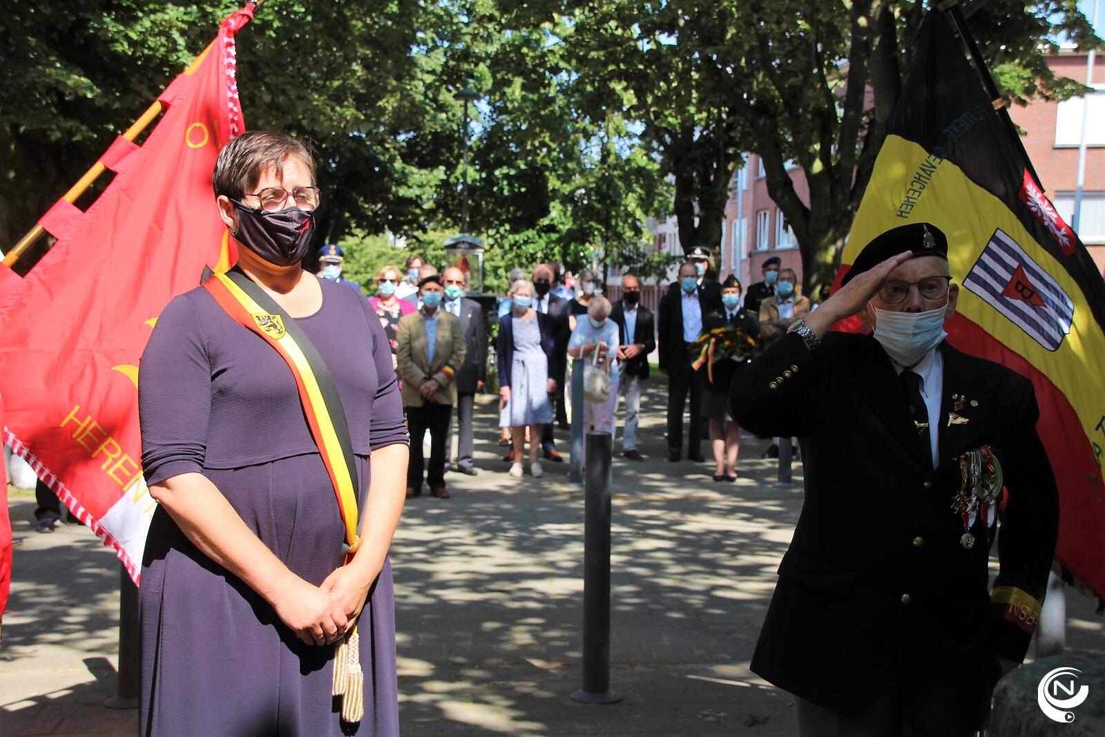 'Dit monument is opgericht ter ere van onze helden uit de beide wereldoorlogen, maar we brengen vandaag ook hulde aan de zorghelden van de covidpandemie en die van het natuurgeweld en de overstromingen van de laatste dagen. Ons volle respect', onderstreepte burgemeester Mien Van Olmen.