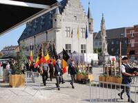Op de foto's en vid : burgemeester Mien Van Olmen en Jos Heyns van NSB Herentals legden kransen neer bij het oorlogsmonument / De optocht door Herentals.
