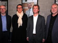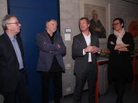 Historisch moment in het administratief centrum dinsdagavond. Je ziet ze niet al te vaak collegiaal samen : 3 oud-burgemeesters en de huidige op de foto bij de inhuldiging van hun portretten in de burgemeestersgalerij.