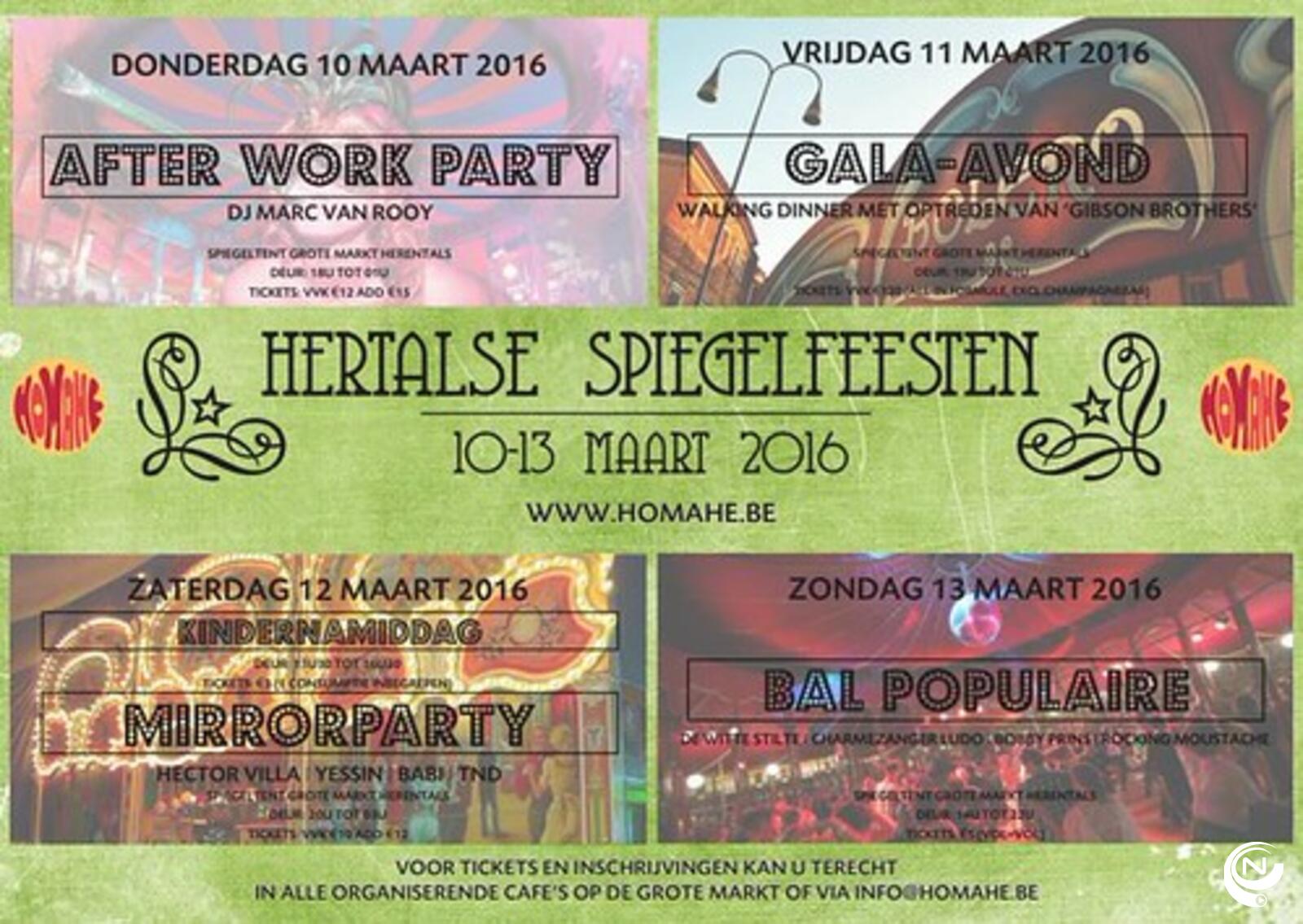 Vrijdag 11 maart kan je genieten van de gala-avond van de Hertalse Spiegelfeesten. Na een warm ontvangst om 19u, geniet u van verschillende drankjes en hapjes, volgt een warm buffet. Een exclusieve Gin & Champagne bar is beschikbaar tegen extra betaling.