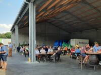 Zo wordt de beste leerling van de klas afgestraft. Om uit te rusten na de 30 kilometerlange fietstocht, opende agricamp de deuren voor een hapje en een drankje. Zo'n 120 personen dienden hier bezwaar in tegen het nieuwe Vlaamse stikstofkader.'