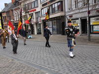 Gustaaf Govaerts, voorzitter NSB Herentals, kreeg uit handen van burgemeester Jan Bertels een erediploma en medaille voor 5 jaar dienst als vaandeldrager. Brigitte Ruts werd vanaf vandaag de officiële 2e vaandeldrager.