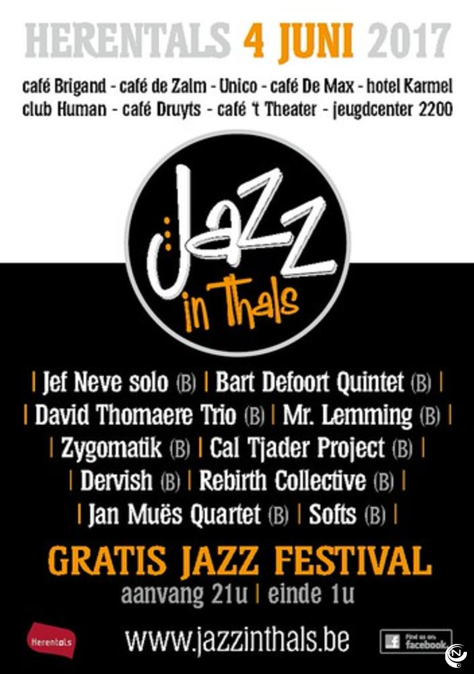Jazz in Thals vindt plaats op en rond de Grote Markt in Herentals. Op 10 locaties spelen evenveel groepen 3 à 4 sets tussen 21u en 1u. Tijdens het festival kan men op de Grote Markt terecht voor een lekkere en gezonde hap.