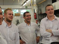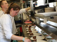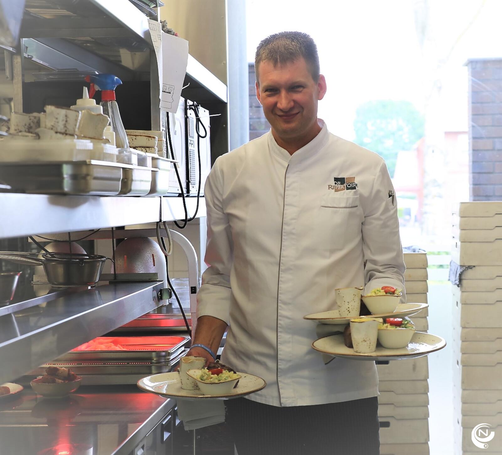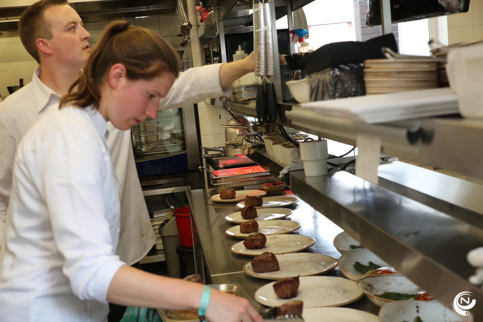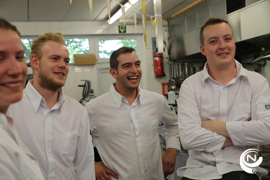 Op de foto's : een kijkje in de keuken met zaakvoerders Joris en Margo samen met hun hecht medewerkersteam.