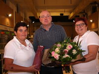Tijdens de bloedinzameling vanavond in 't Hof kreeg Jos Tops uit Herentals bloemen en een fijne attentie voor zijn 100e bloedgifte. Nancy Van Den Broeck, Jos Tops en Nadia Luyten gingen terecht graag op de foto.