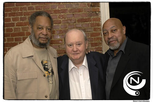 Foto: Juul Anthonissen tijdens de viering van 50 jaar Hnita-jazz samen met Ben Riley en Kenny Baronny/foto archief/Nnieuws.be