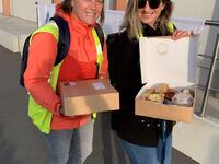Wie stapt, fietst, stept of carpoolt, werd door de directie getrakteerd op een heerlijk vers ontbijtpakket.