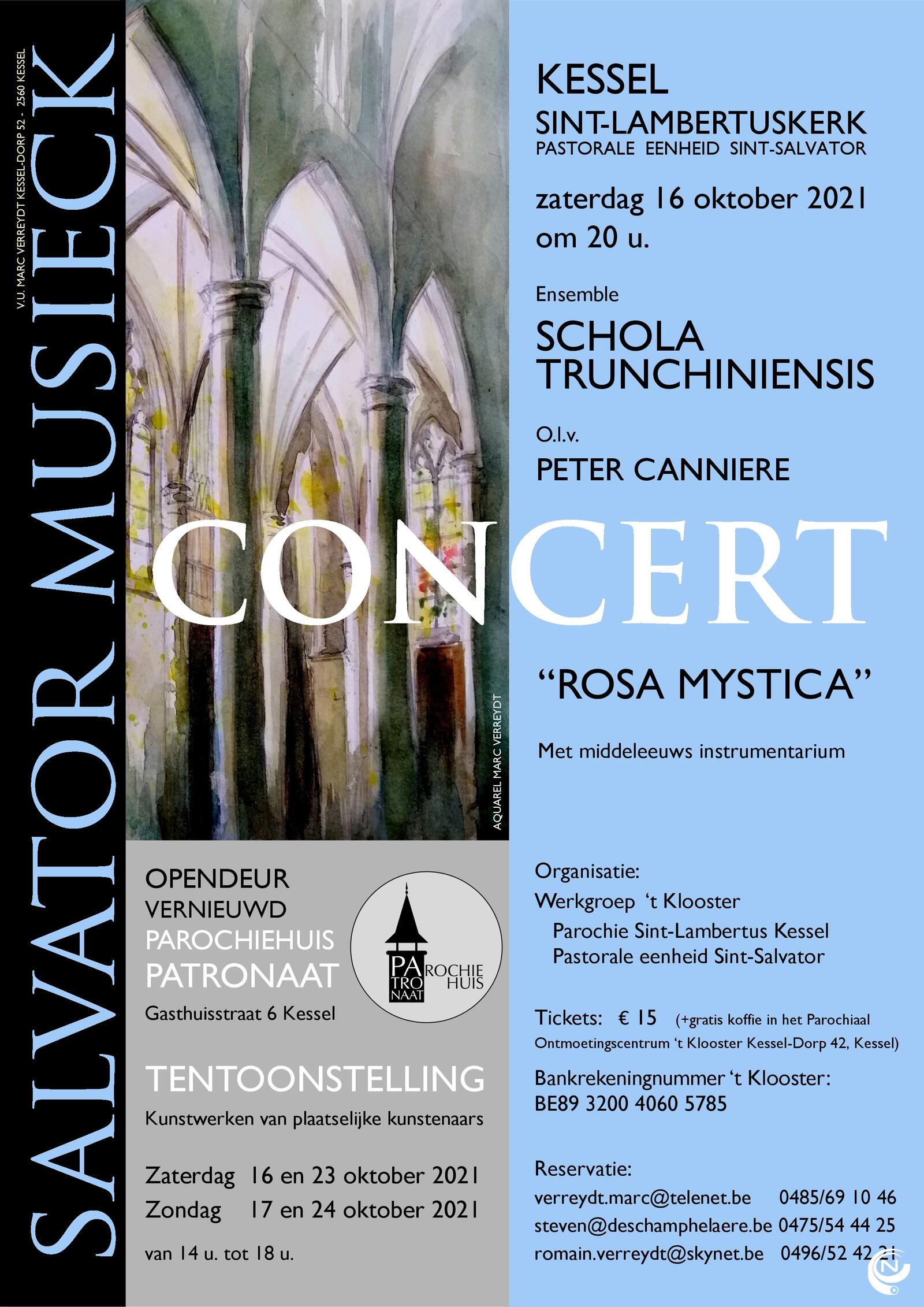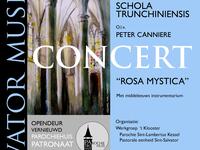 Ensemble "Schola Trunchiniensis" o.l.v. Peter Canniere. "Schola Trunchiniensis" bestaat uit 6 dames met een grote passie voor het gregoriaans. Onder leiding van Peter Canniere brengen zij gezangen die verbonden zijn aan de verering van de Maagd Maria.