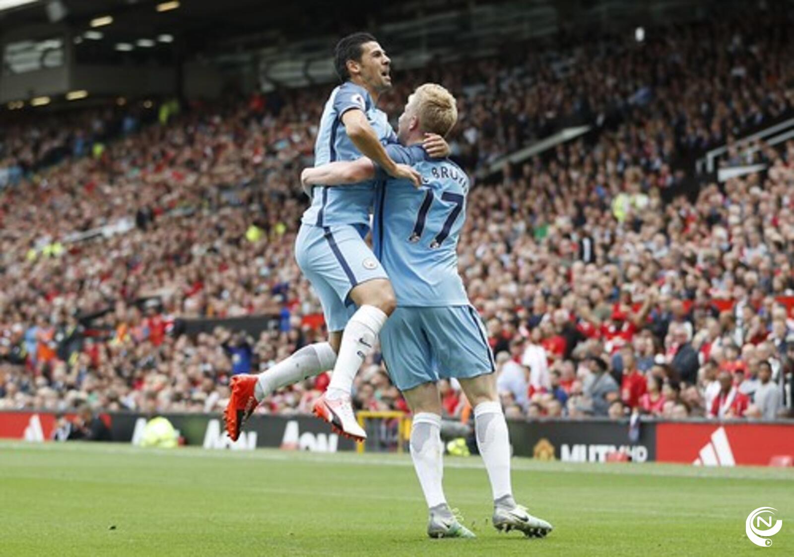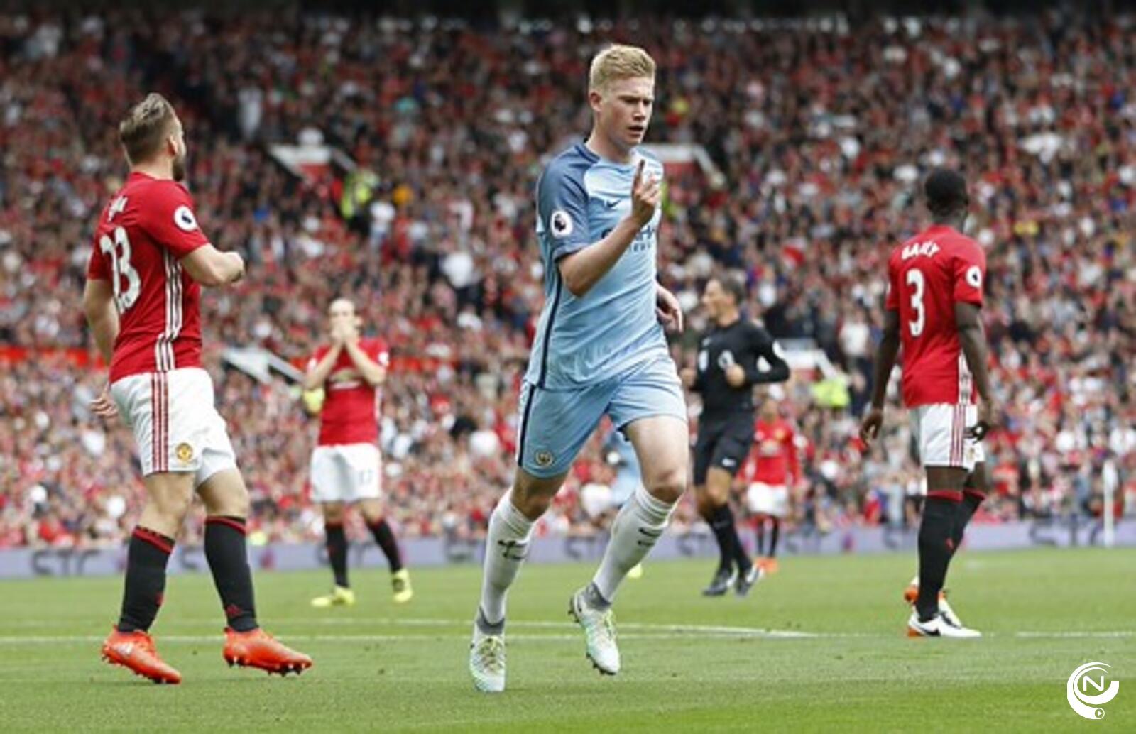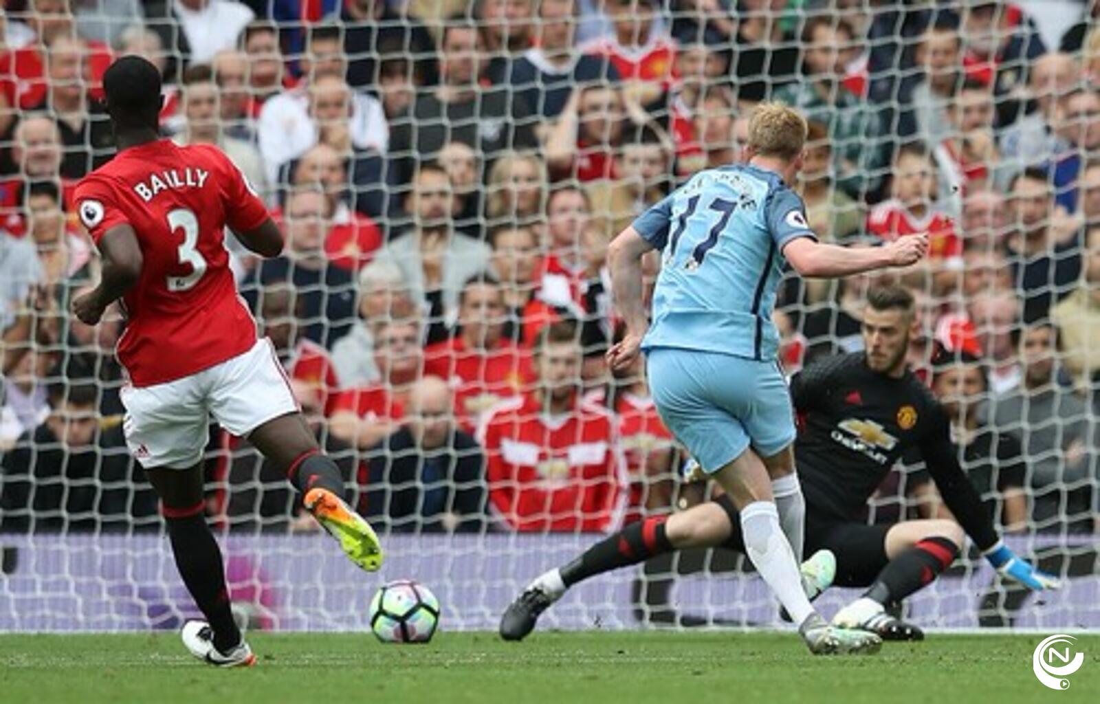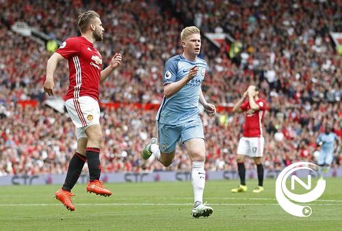 Manchester City heeft zaterdagnamiddag de stadsderby op het veld van Manchester United gewonnen. Kevin De Bruyne scoorde op het kwartier de 0-1 nadat hij de bal voor United-verdediger Blind zijn neus afsnoepte. In de 36' schoot hij de 0-2 op de paal. Zîjn ploeggenoot Iheanacho kon de bal intikken.
