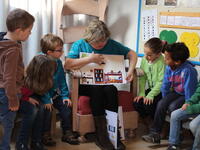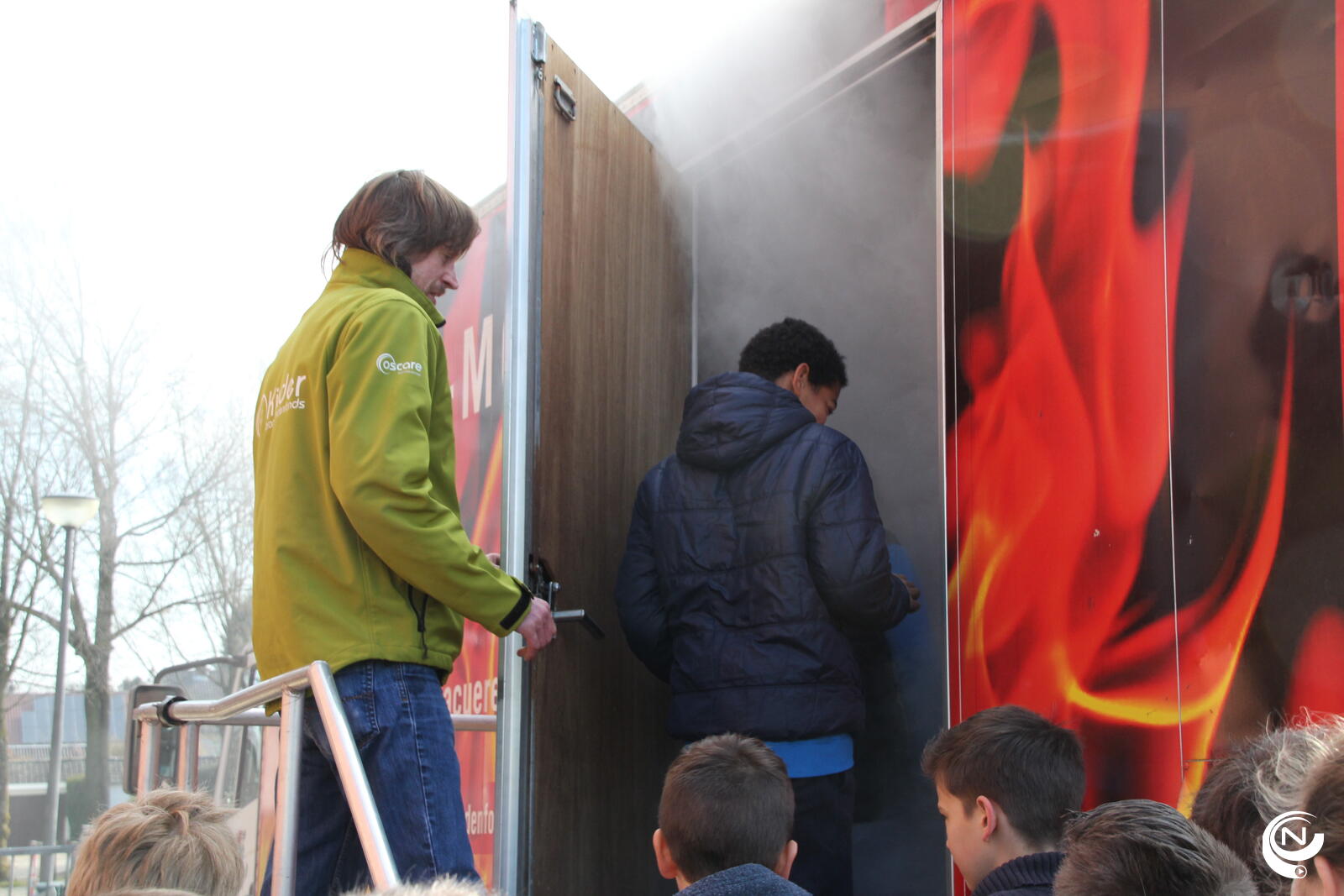 De leerlingen mochten ook allemaal even in de 'flamobiel' op de speelplaats : een aparte leerrijke ervaring. De leerlingen waren het er allemaal over eens : 'Nu gaan we beter opletten met vuur, om zo brandwonden te vermijden.'