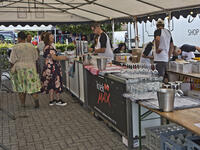 De dansvloer stond vaak stampvol met gelukkige fans. Onze marktkramers waren meer dan content met goede sales. Ook de tattoo-shop had de hele namiddag veel werk. Toch opvallend heel wat meisjes lieten een tattoo voor het leven plaatsen. Dank ook aan de trotse eigenaars van hun unieke Classic Cars die heel wat retroharten sneller deden bonzen,