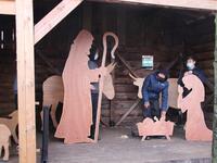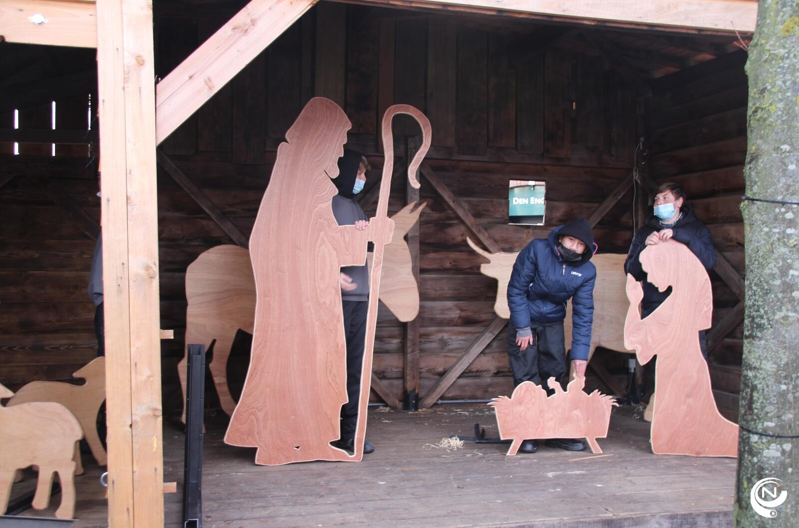 De kerststal op de Grote Markt in Herentals kreeg vanmiddag een  fijne aanvulling met houten creaties van Maria, Jezus en Jozef.