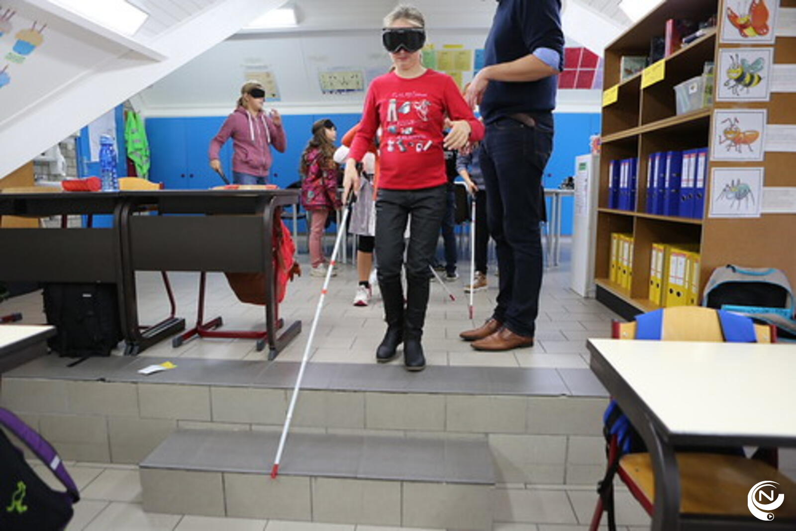 In de namiddag gingen de kinderen zelf op pad met krukken, blindenstok of rolstoel. Daarbij onderzochten ze private en openbare gebouwen op toegankelijkheid. Zo ondervonden ze aan den lijve hoe bereikbaar hun omgeving en enkele gebouwen zijn voor mensen met een handicap.