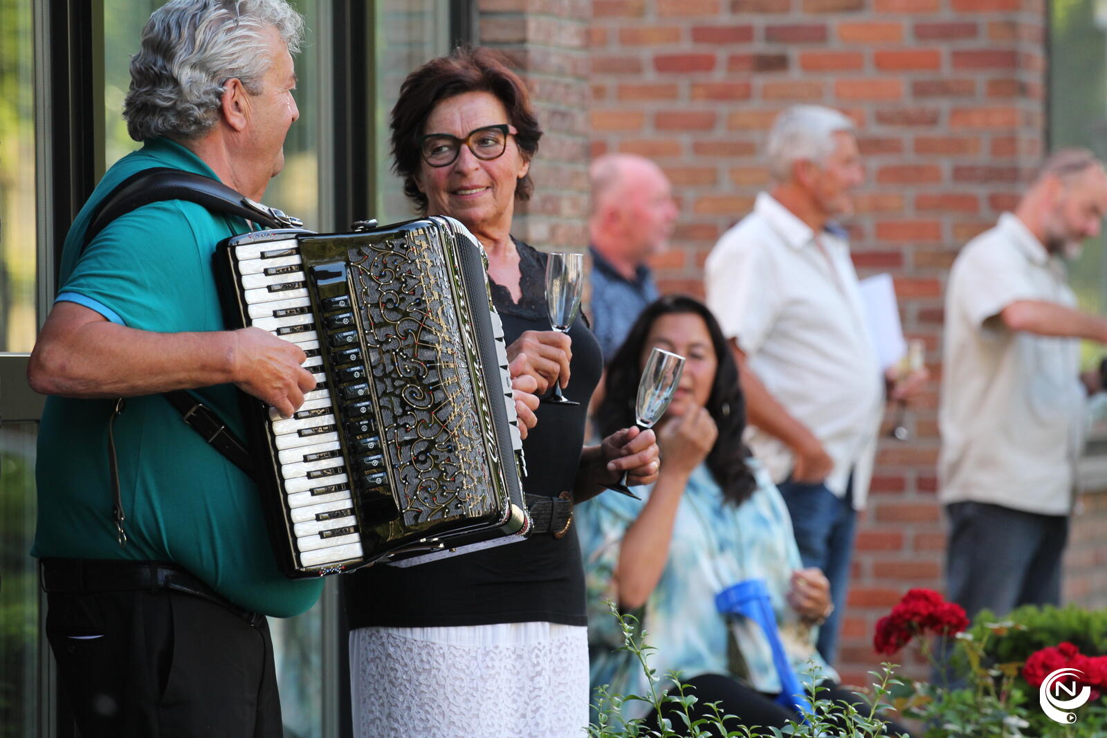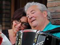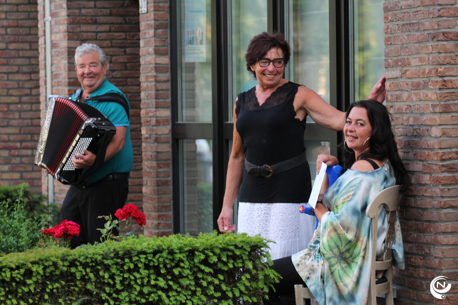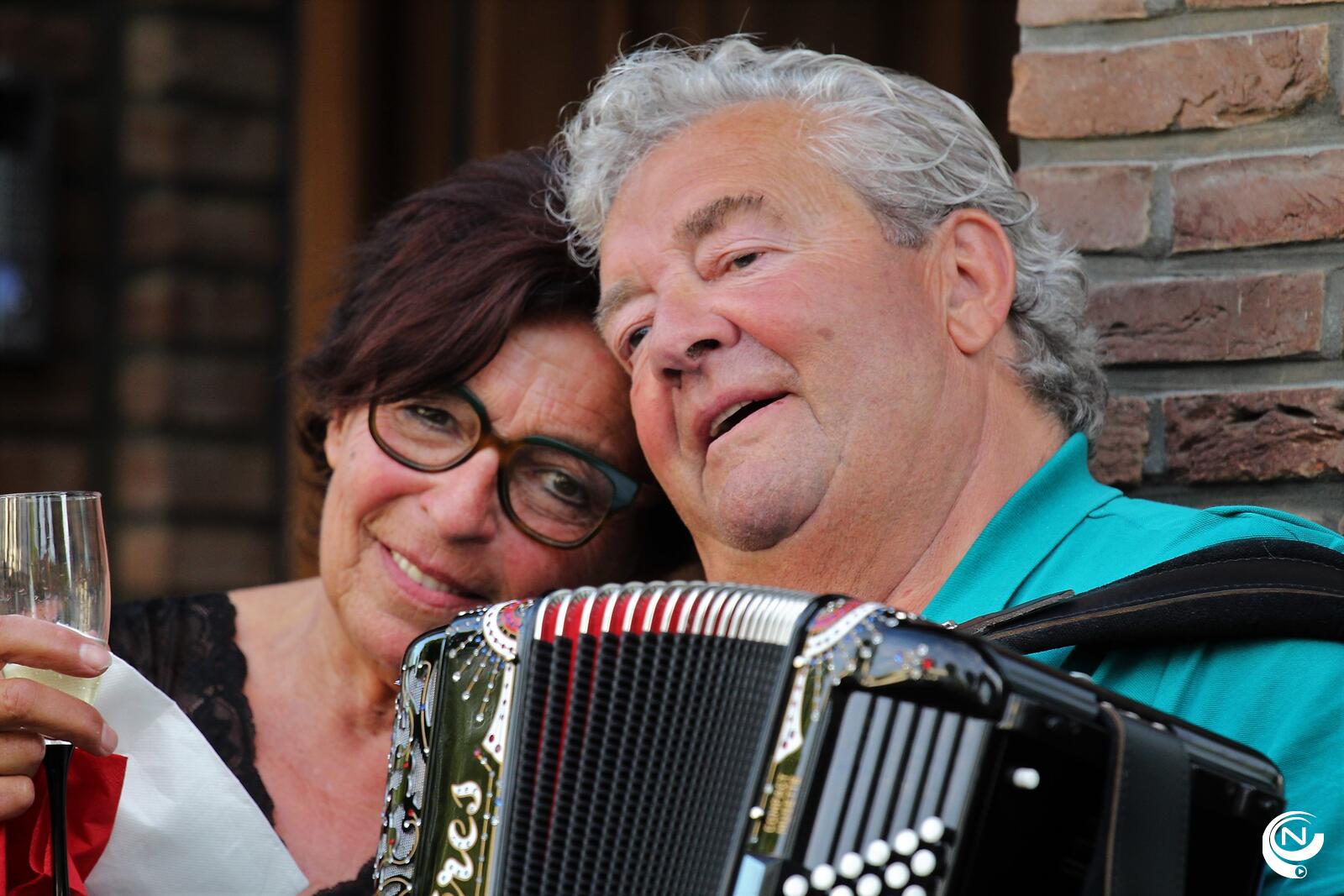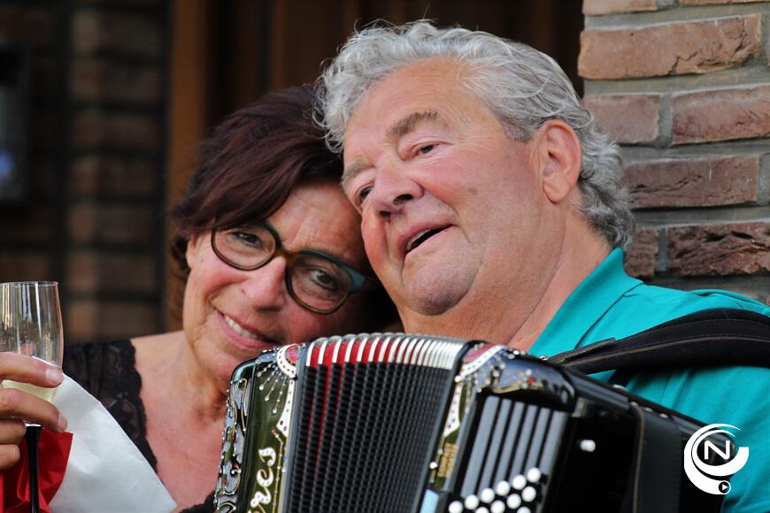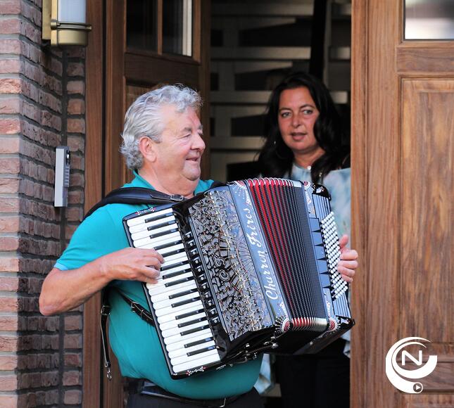 '70 lentes is al iets, maar ik ben al heel m'n leven optimist. We houden ons sterk. Echte liefde kent geen grenzen. Het doet iedere avond deugd dat hier een trouw publiek komt luisteren naarde accordeondeuntjes voor het zorgspersoneel.  Nu zien we ook vaak buren die we anders niet ontmoeten.