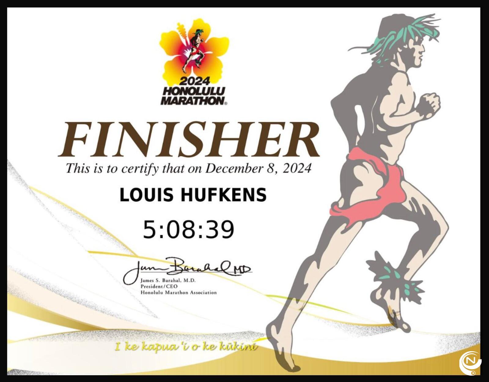 Afgelopen week stond Louis in Hawaï voor z'n tweede keer aan de start van de wereldberoemde Honolulu Marathon met een knappe tijd van 5u08:39.